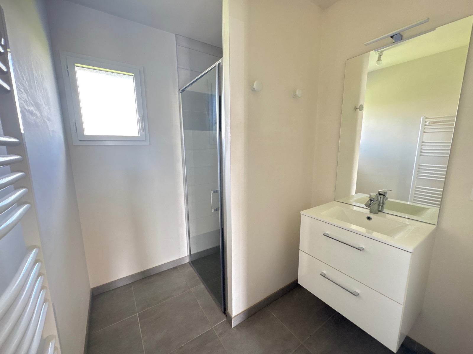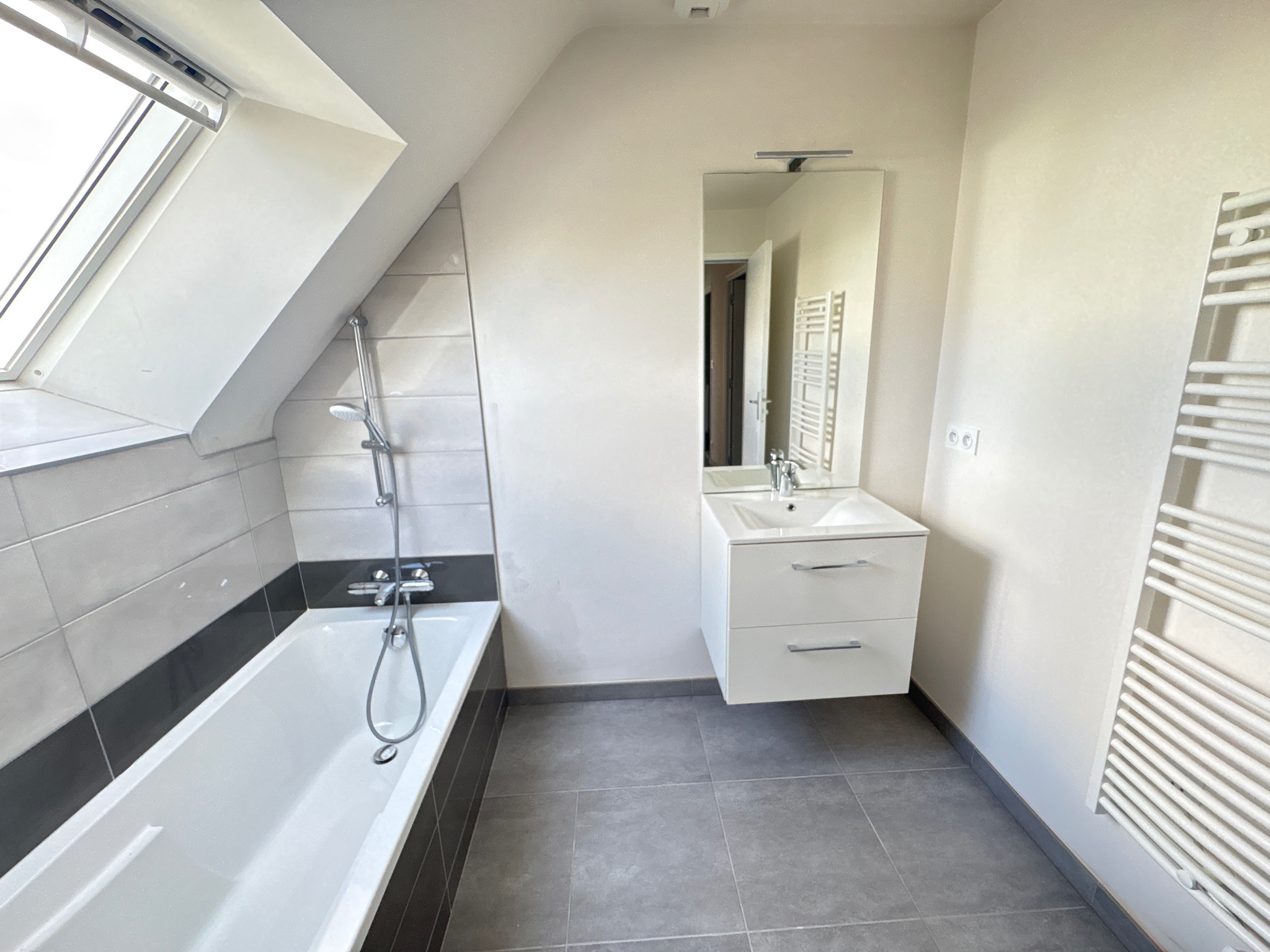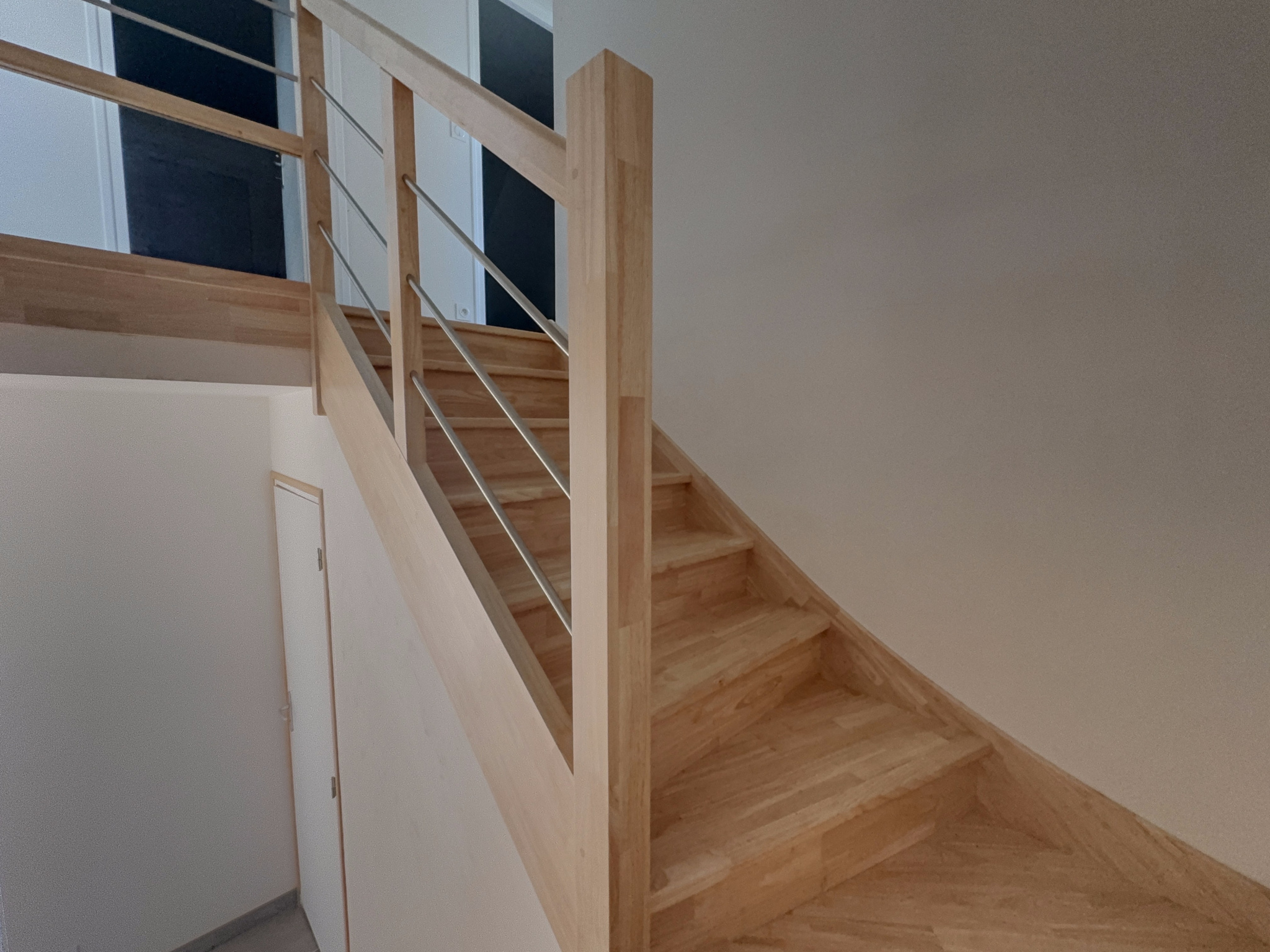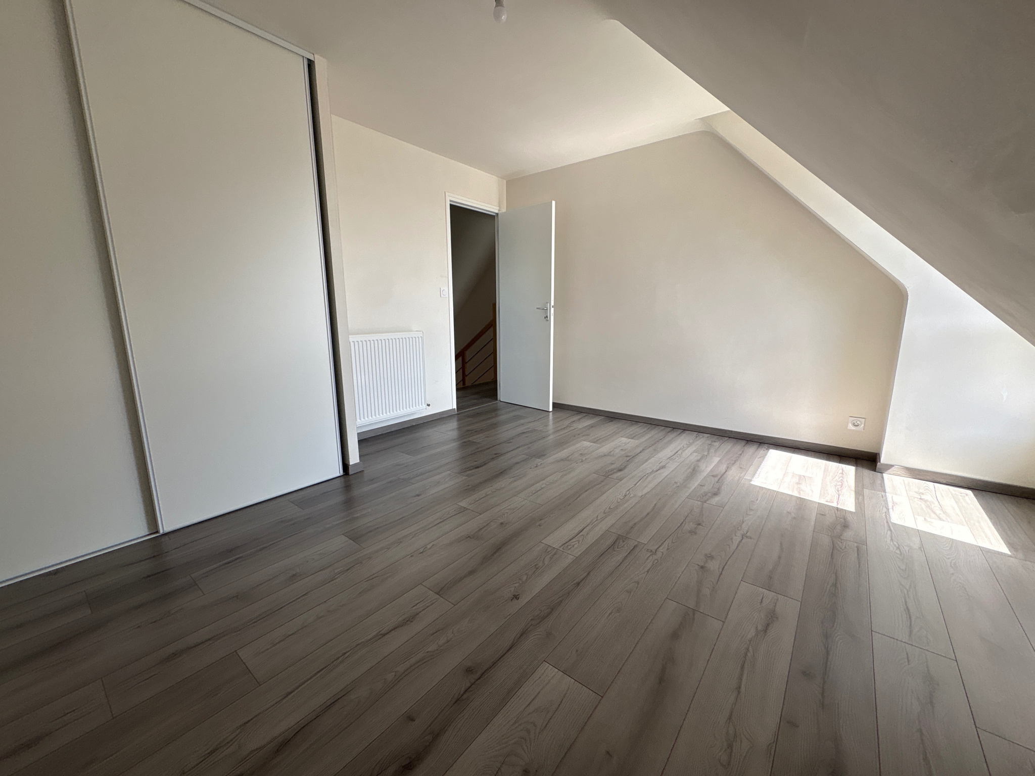Au rez-de-chaussée, elle se compose d’une entrée avec placard, d’une agréable pièce de vie lumineuse avec cuisine aménagée et équipée (lave-vaisselle, four, plaque de cuisson, hotte), ainsi que d’un cellier attenant. Un couloir avec de grands placards dessert une chambre, une salle d’eau et un WC indépendant.