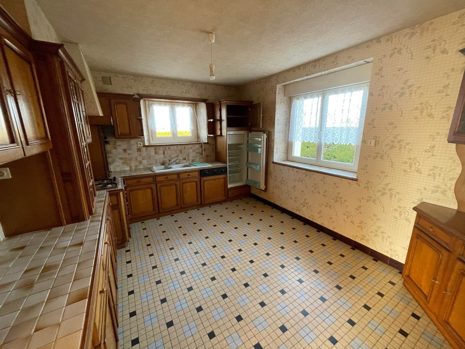 Au sous-sol, une piéce aménagée en cuisine avec insert, un coin buanderie et un garage.