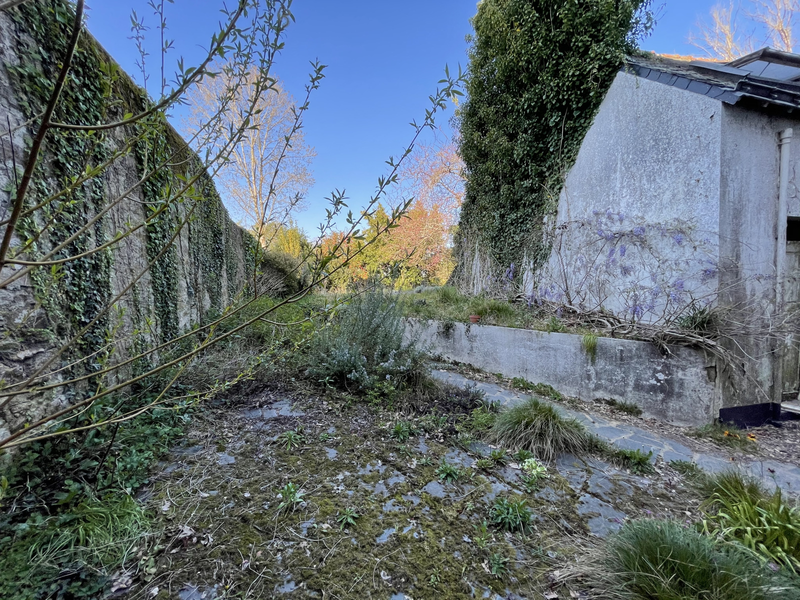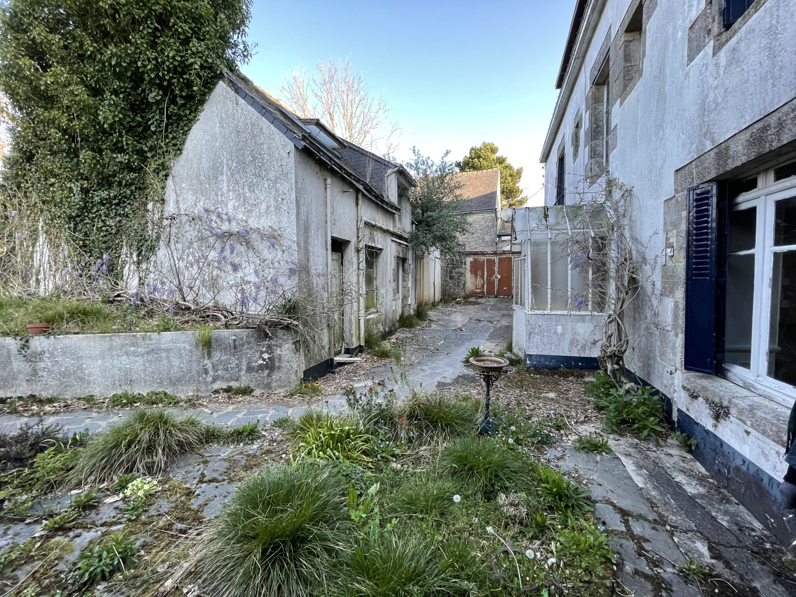 - une deuxième maison derrière à rénover avec un garage accolé qui possède un accès par une servitude donnant sur la rue.