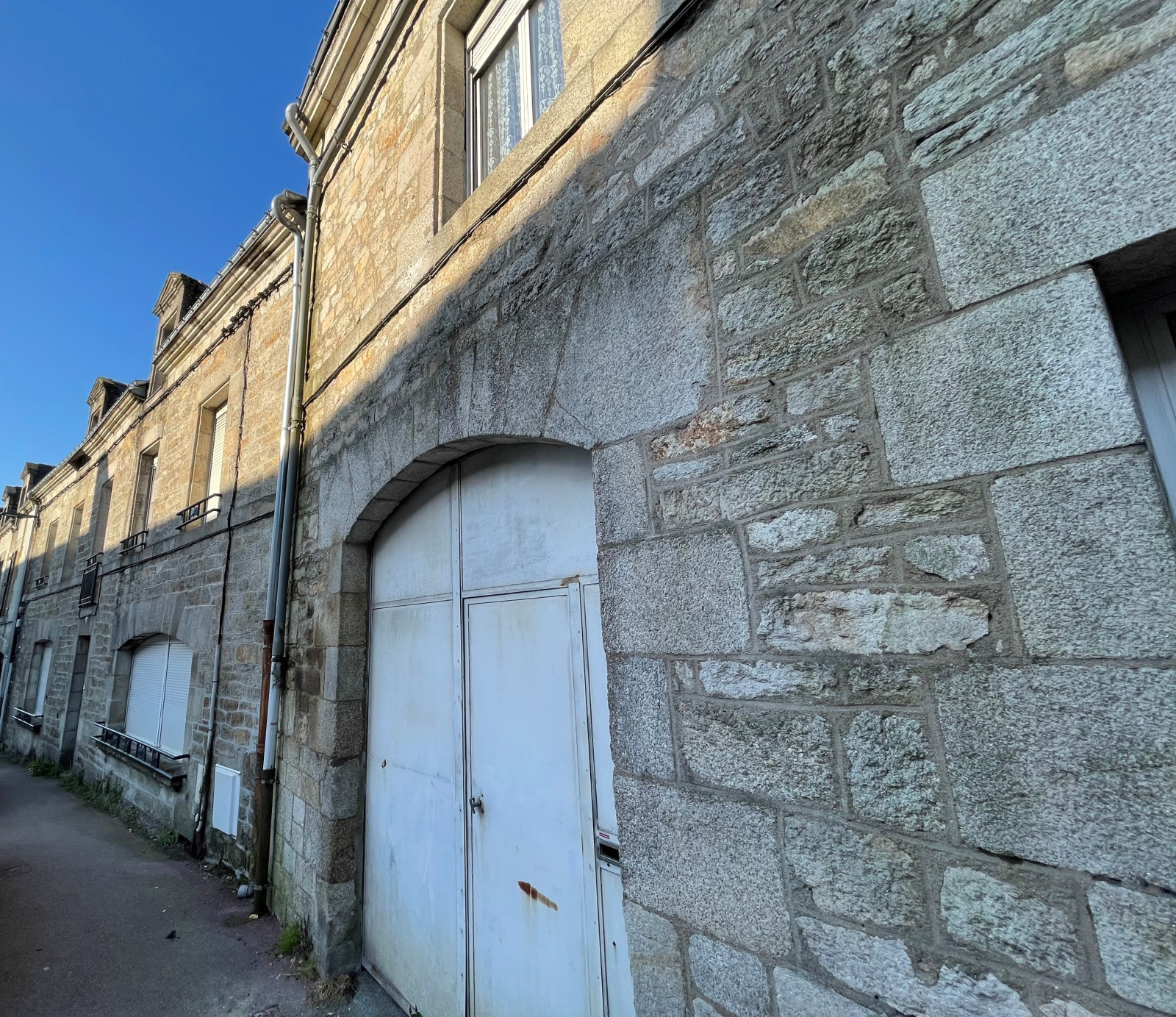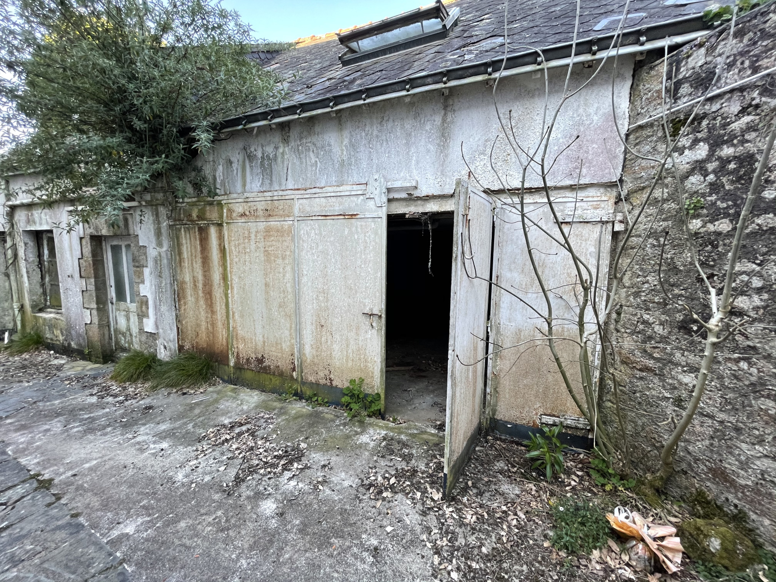 à l'arrière du bâtiment : une maison en mauvais état à rénover et un garage avec accès sur la rue par une servitude de passage.