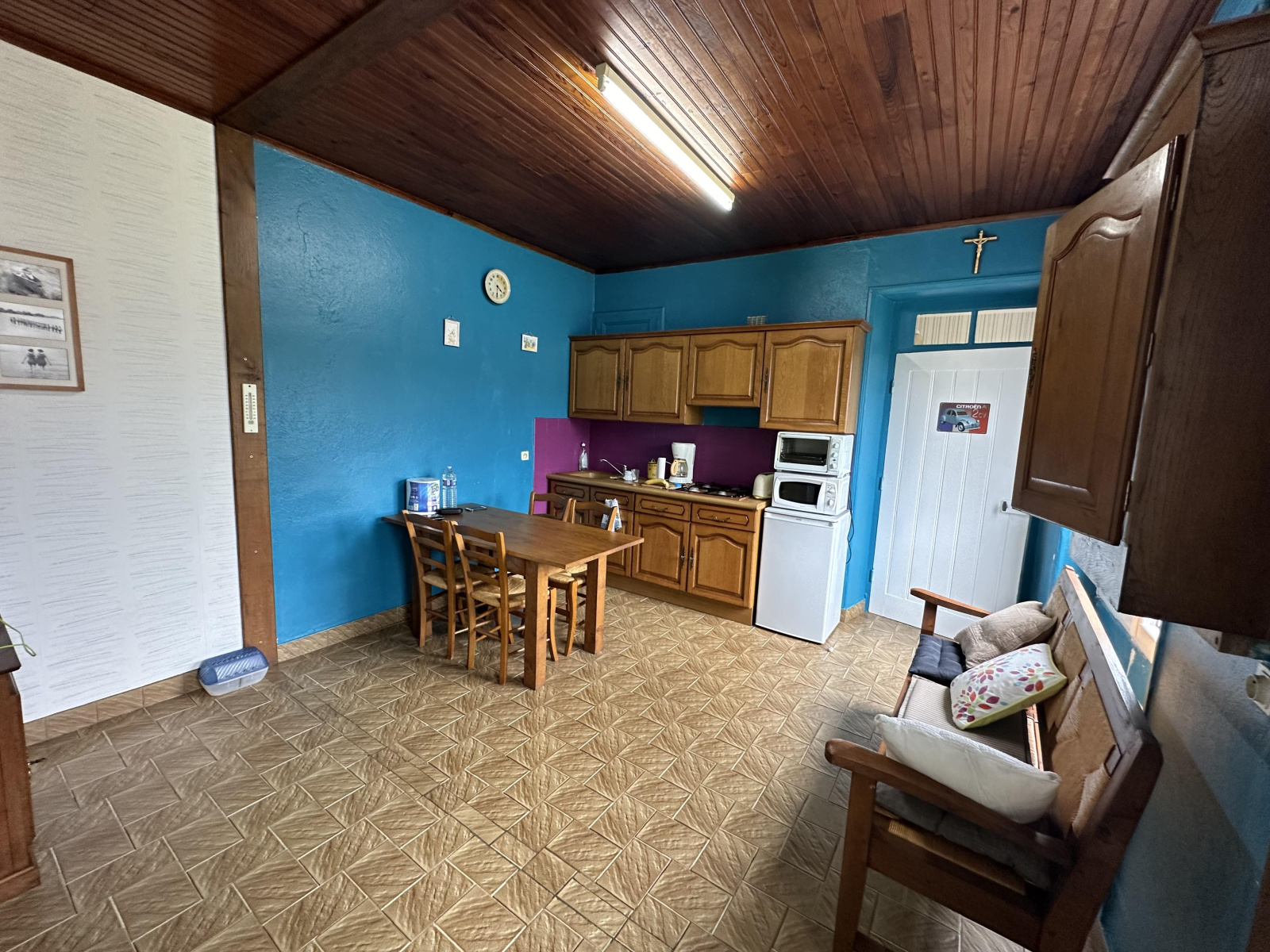 Une entrée, une pièce de vie, cuisine, salle à manger, deux chambres, une salle de bain et un WC séparé.