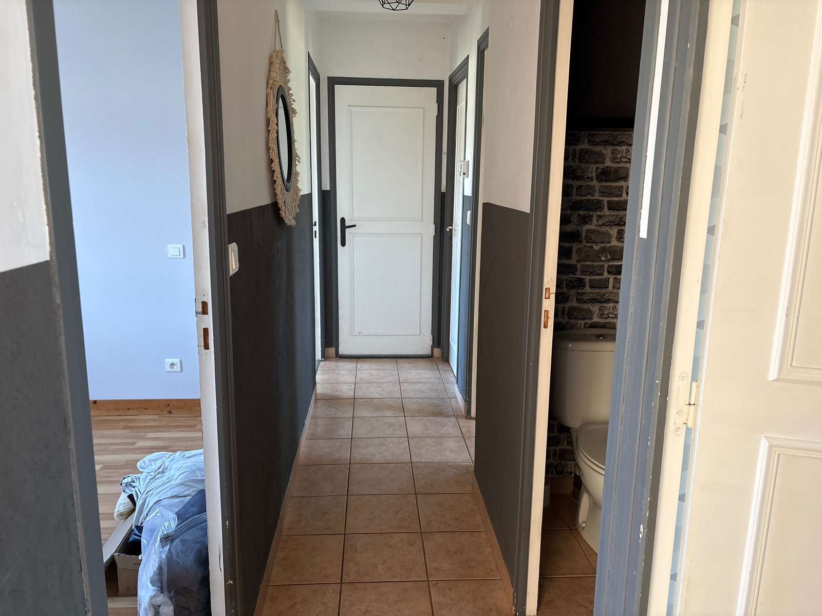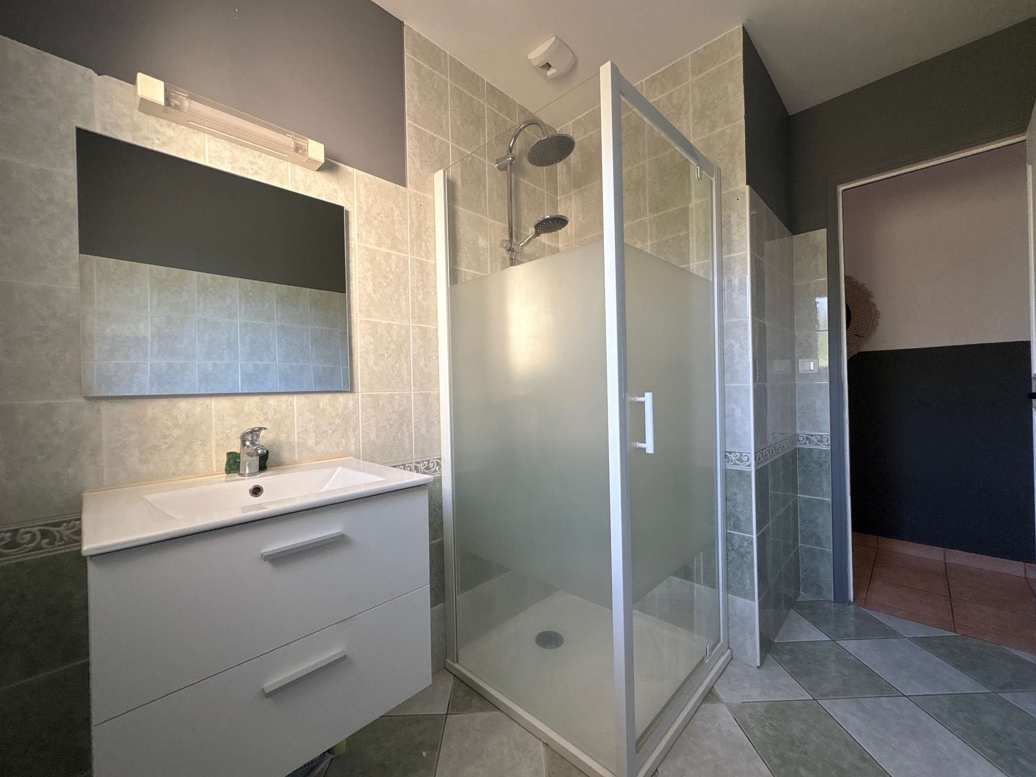 La partie nuit comprend deux chambres avec placards, une troisième chambre, une salle d’eau et un WC séparé.