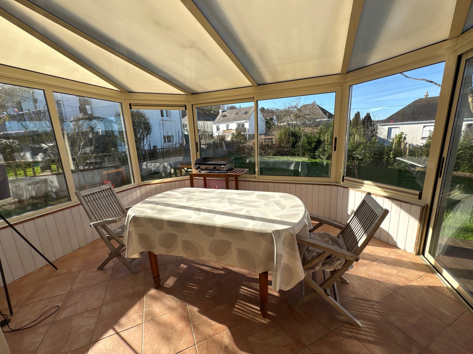 D’une superficie d’environ 72 m², elle se compose d’une pièce de vie lumineuse avec cuisine ouverte sur la salle à manger, aménagée et équipée, donnant accès à une agréable véranda tournée vers le jardin.