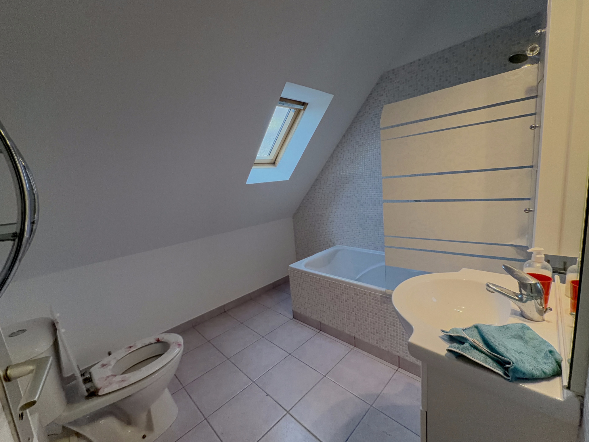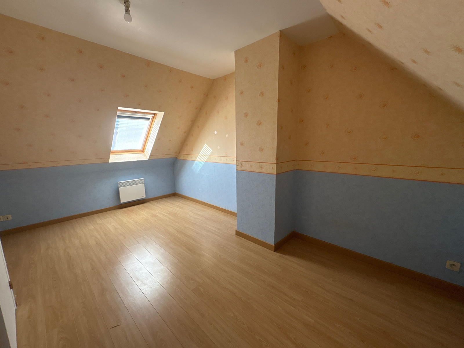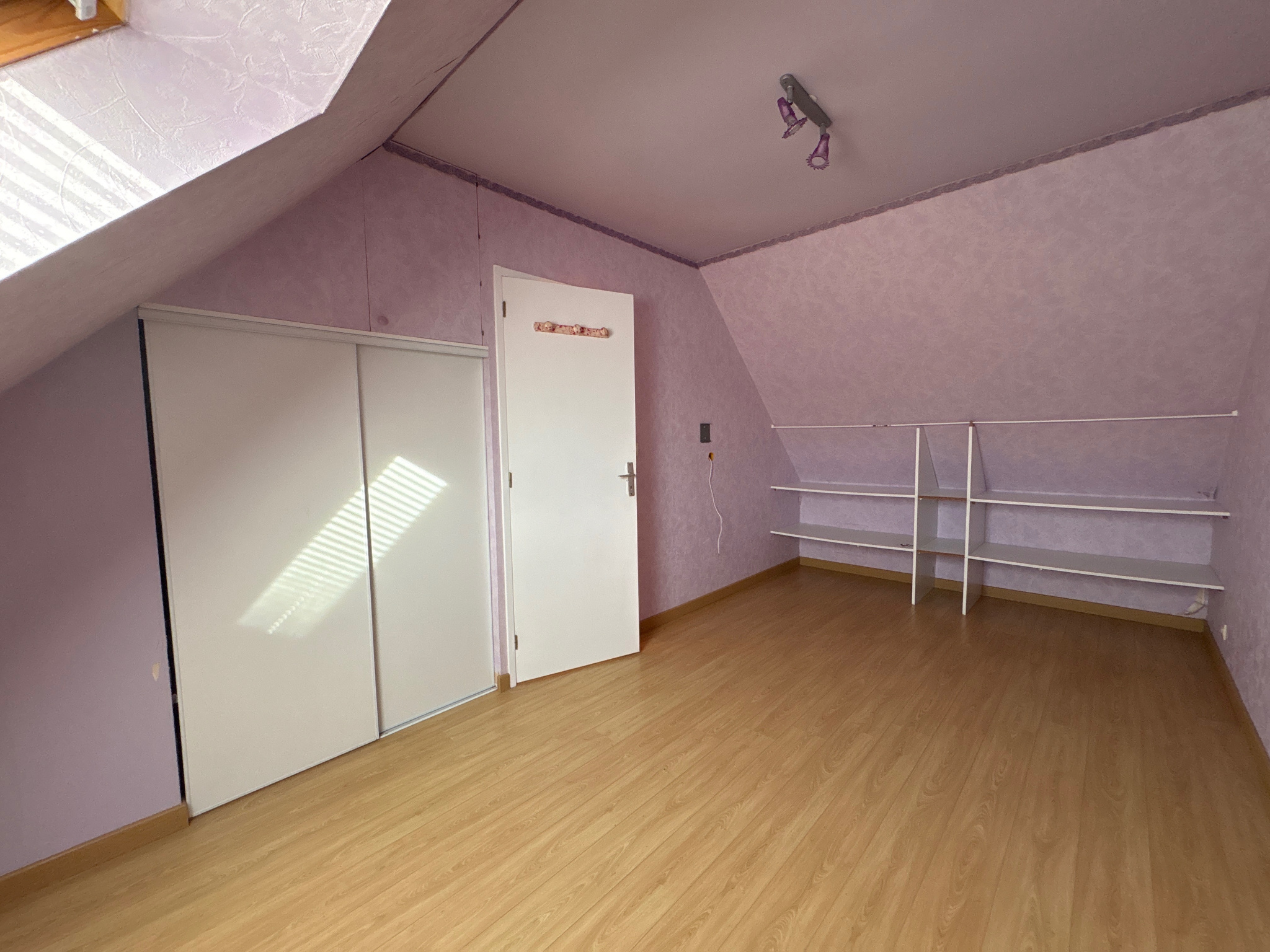 À l’étage : deux belles chambres avec placards, une salle de bains avec WC.