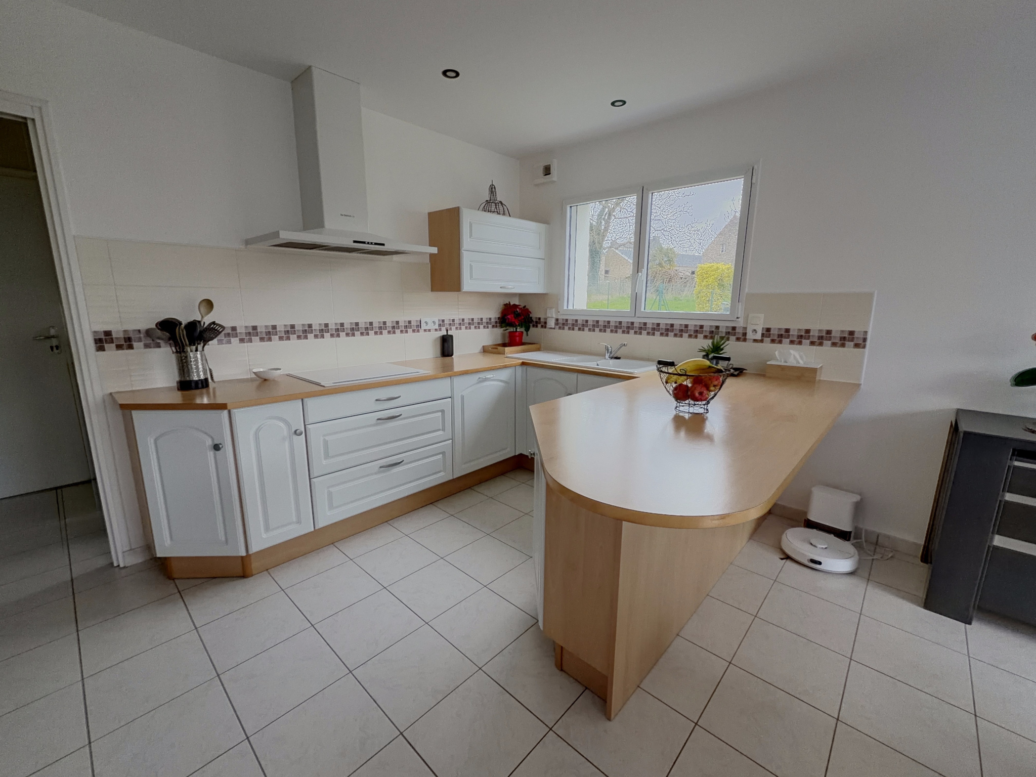 Au rez-de-chaussée, vous serez accueilli par une belle entrée desservant une agréable pièce de vie composée d’un salon chaleureux avec poêle à granulés, une salle à manger et une cuisine aménagée et équipée. Un cellier / buanderie ainsi qu’un garage complètent cet espace. Vous bénéficierez également d’une suite parentale avec dressing et salle d’eau, idéale pour une vie de plain-pied.