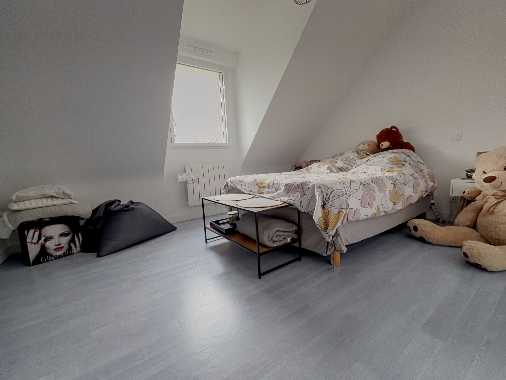 À l’étage, une mezzanine dessert deux belles chambres, dont une avec placard, une salle d’eau avec WC, ainsi qu’une pièce supplémentaire pouvant être aménagée en chambre selon vos besoins.
