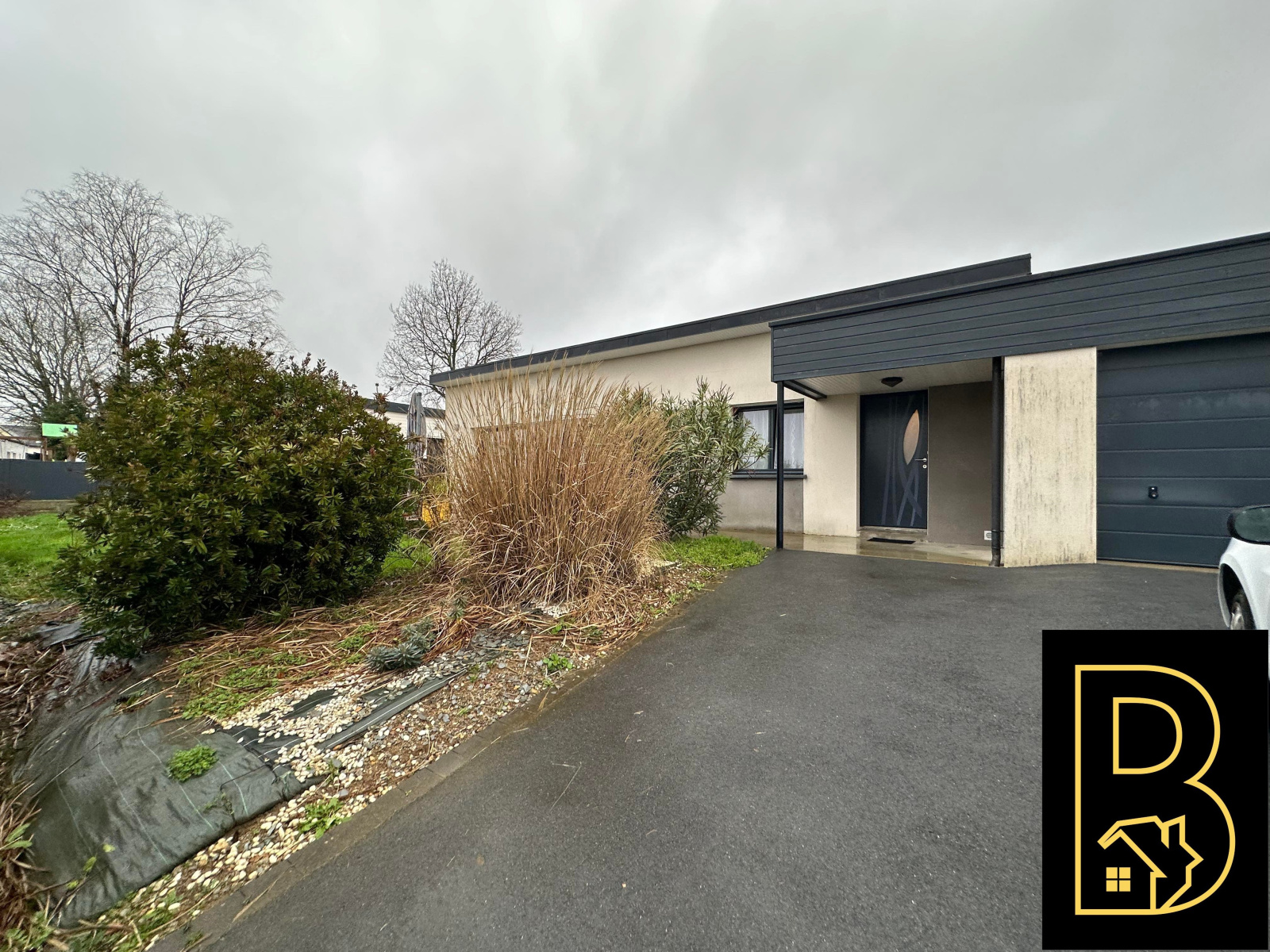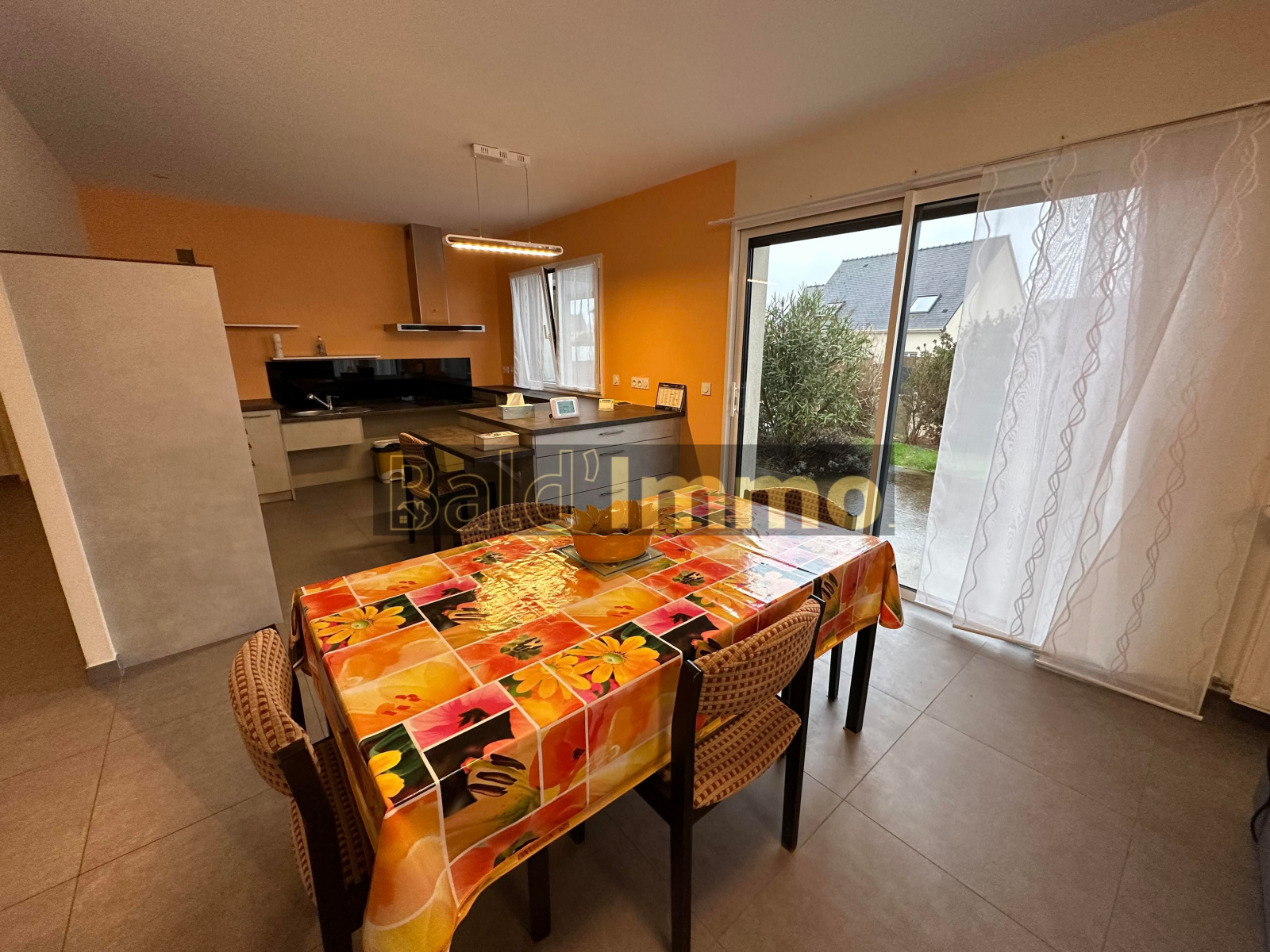 Belle maison de plain-pied de 2015 située proche du centre-ville de Baud, elle se compose :