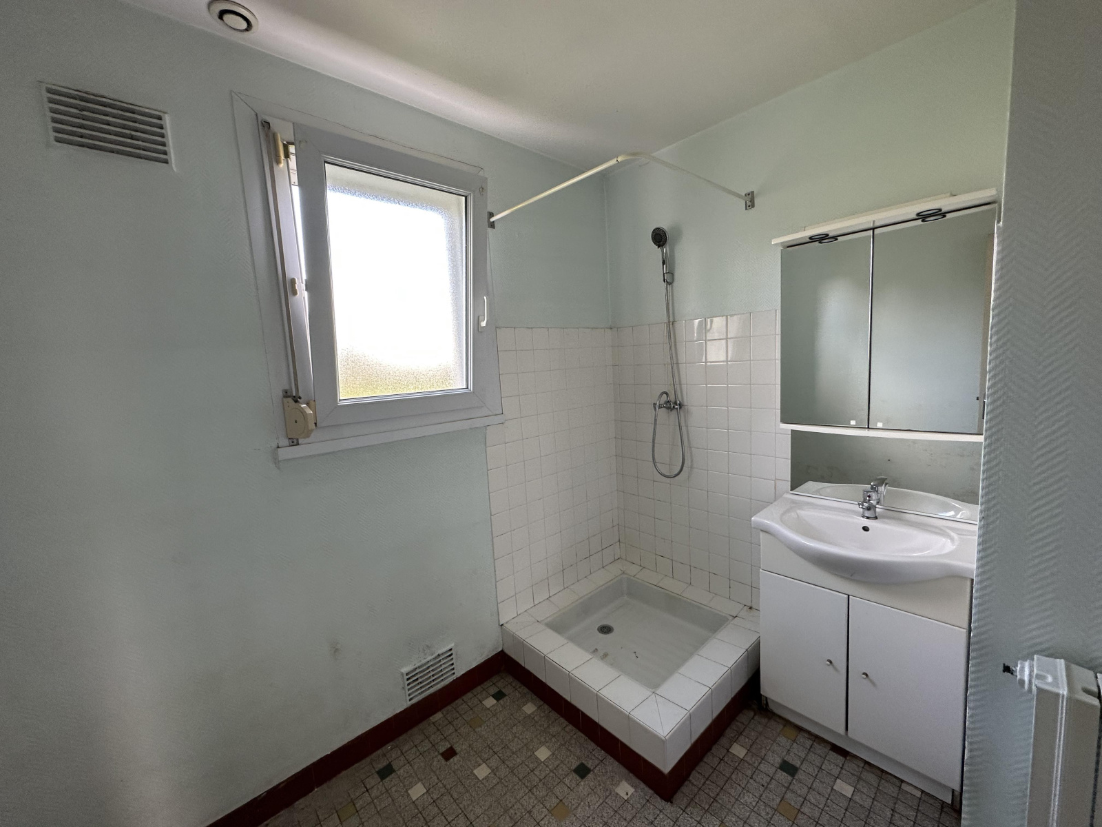 Baud (56150)Maison plain-pied des années 1970 en centre-ville de Baud, elle se compose :