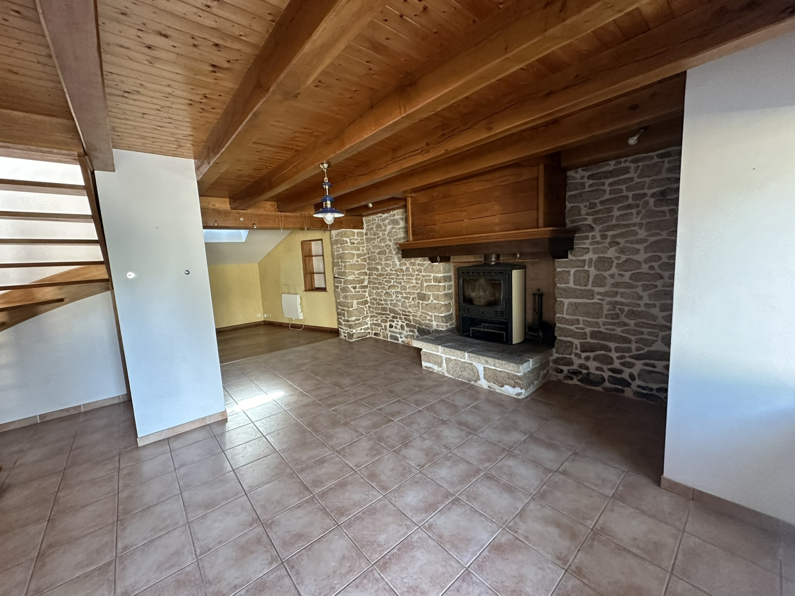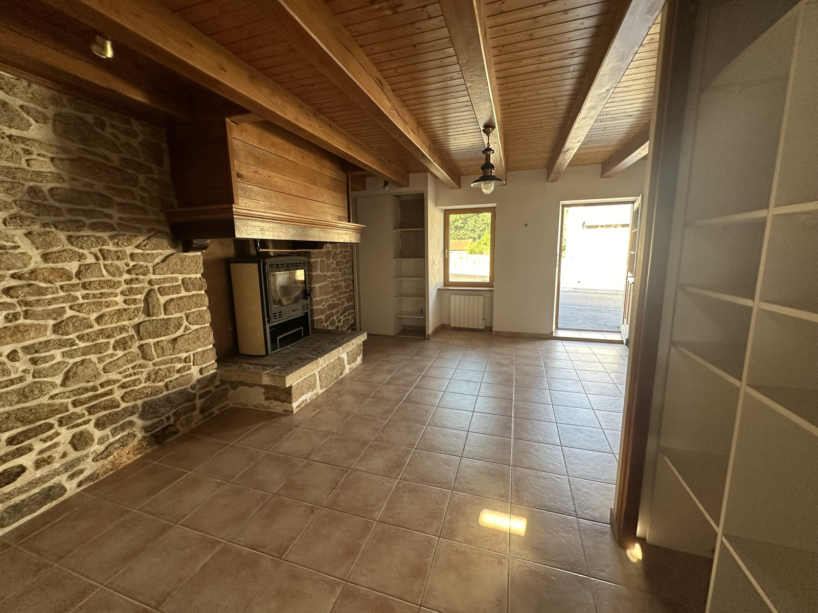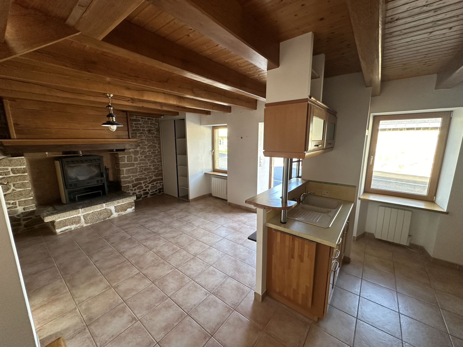 -Au rez-de-chaussée: une entrée desservant une salle à manger, un salon avec un poêle à bois, une cuisine ouverte aménagée et équipée, un WC.