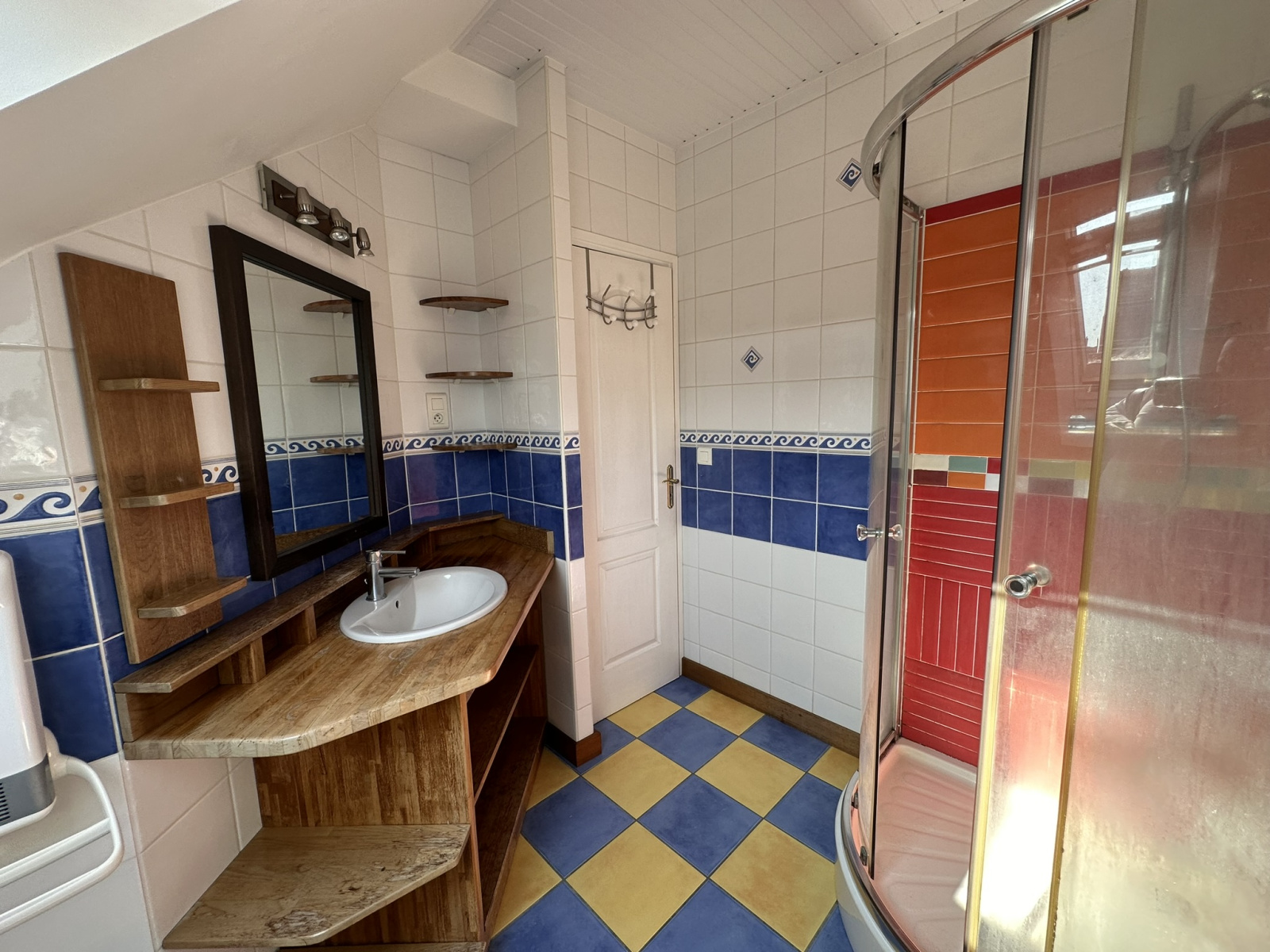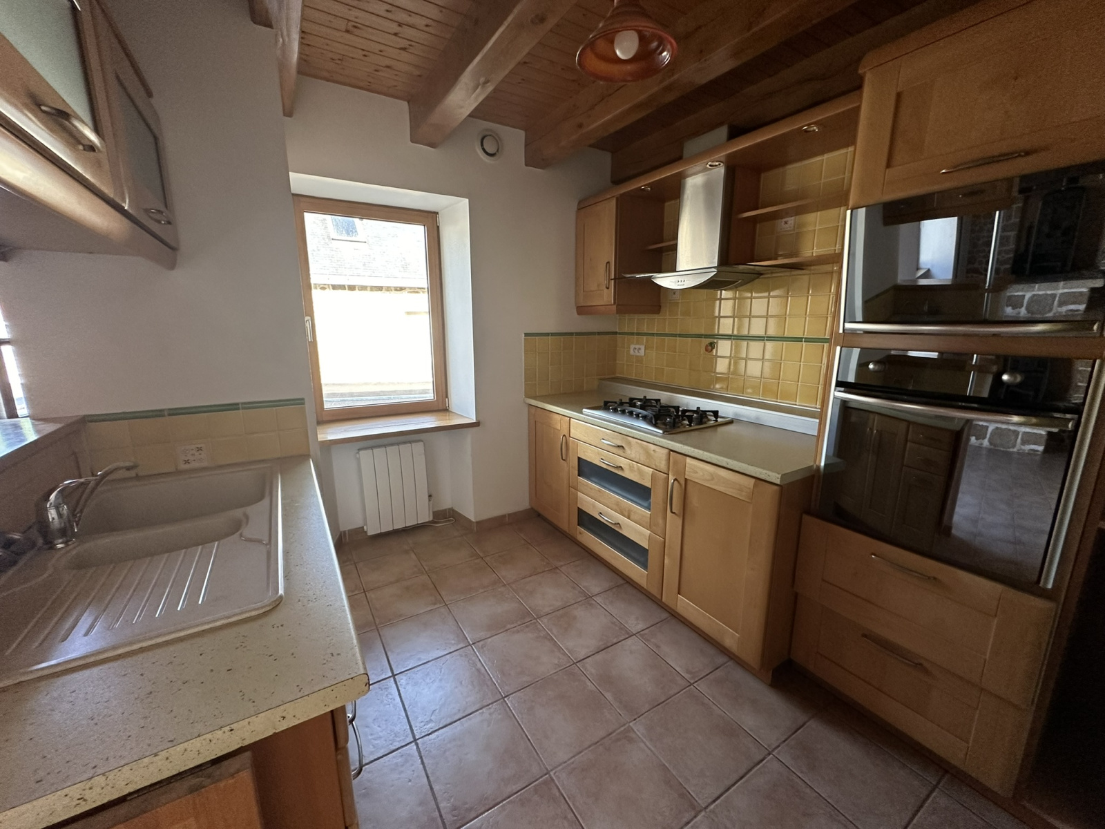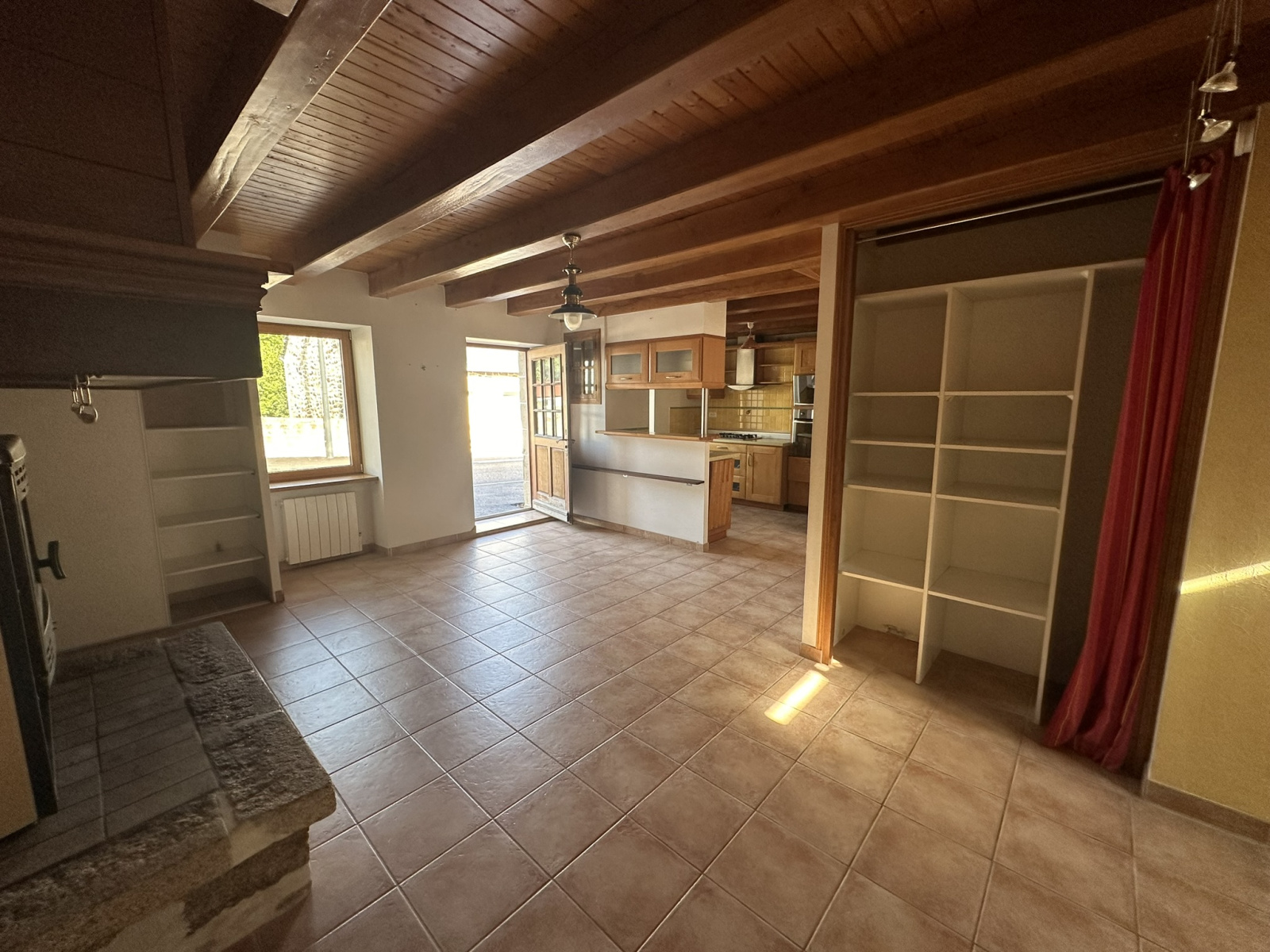 -Au rez-de-chaussée: une entrée desservant une salle à manger, un salon avec un poêle à bois, une cuisine ouverte aménagée et équipée, un WC.