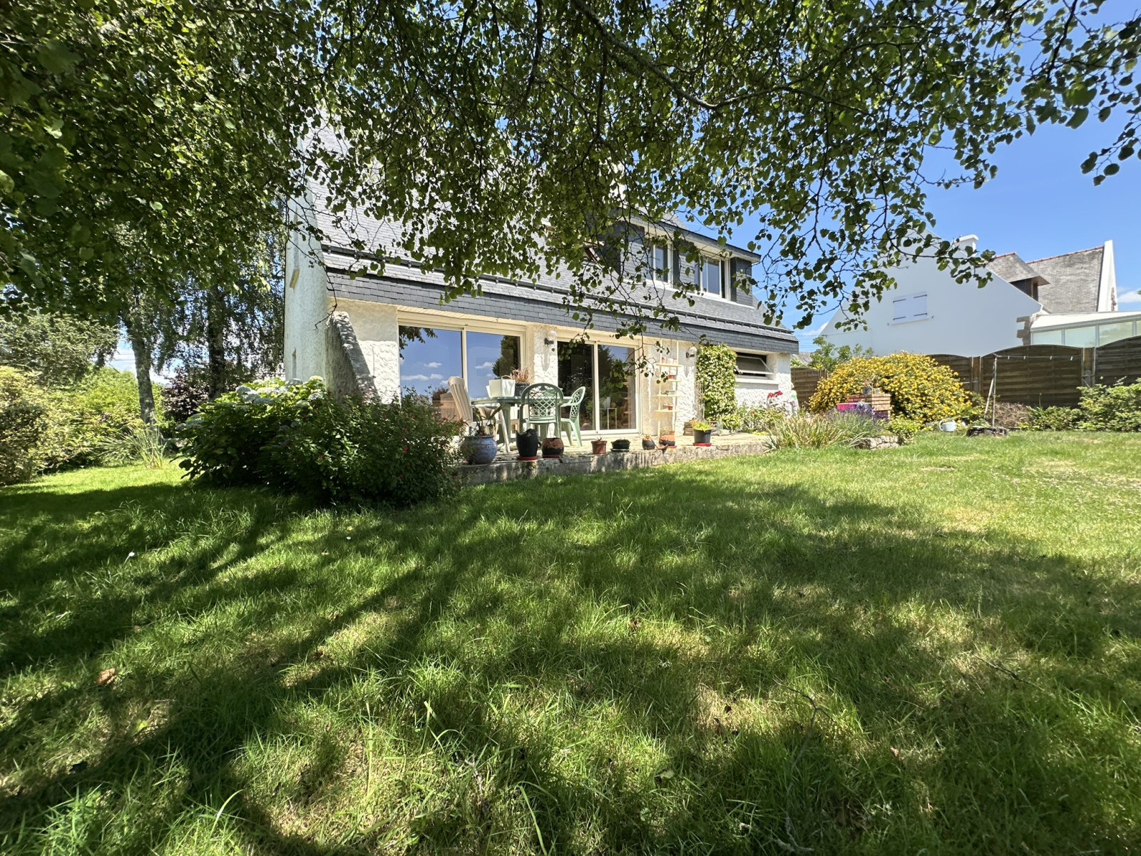 À l’extérieur, vous profiterez d’un terrain arboré de 735 m², offrant calme et intimité, avec un bon potentiel d’aménagement.
