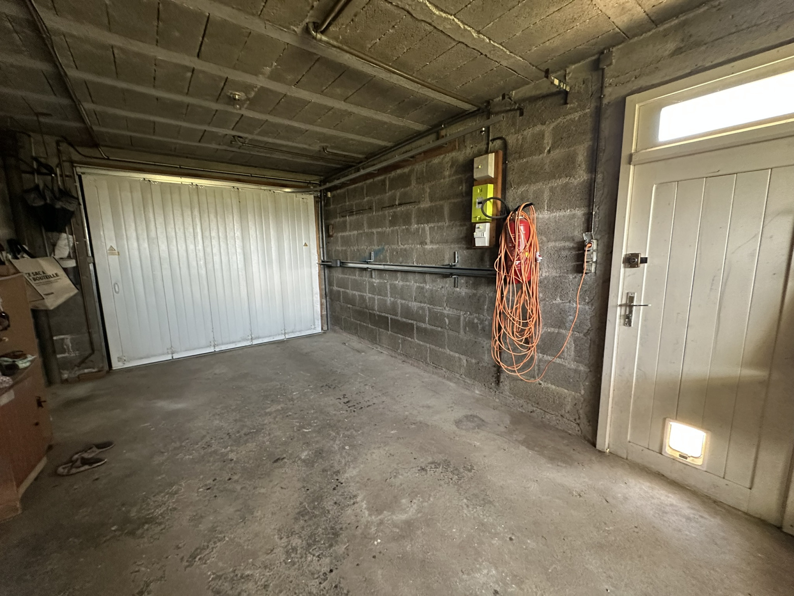 Une entrée, une belle pièce de vie lumineuse exposée sud avec salon doté d’une cheminée, une salle à manger, une cuisine aménagée et équipée, un WC indépendant et un garage attenant. -
