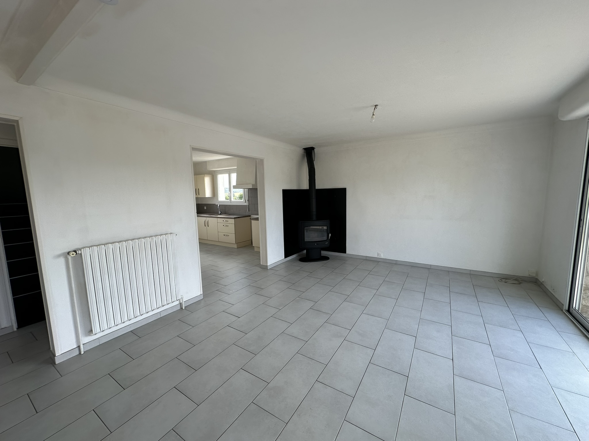 D’une agréable pièce de vie lumineuse avec poêle à bois, D’une cuisine ouverte, deux chambres, D’une salle d’eau, Et d’un WC indépendant.