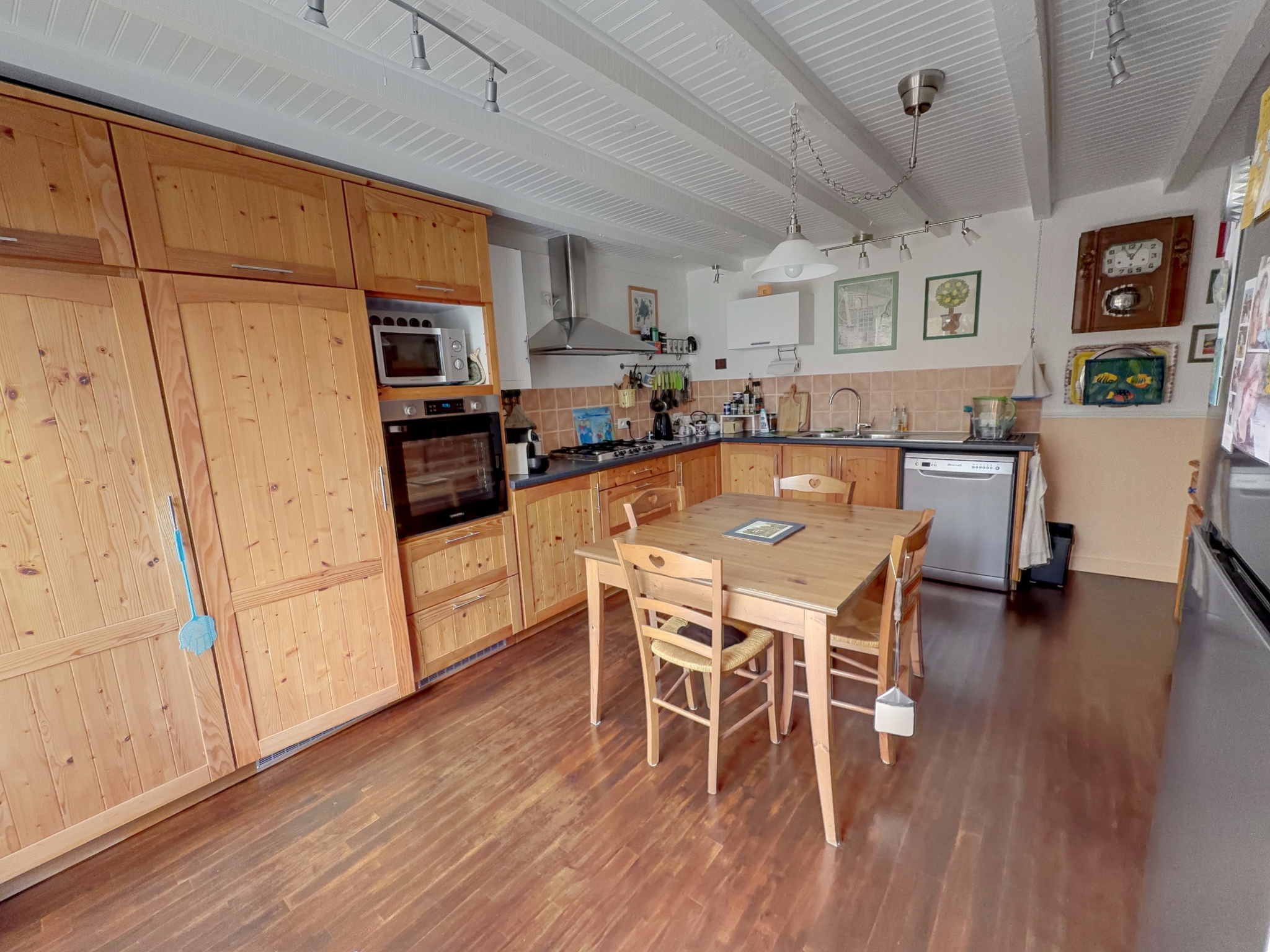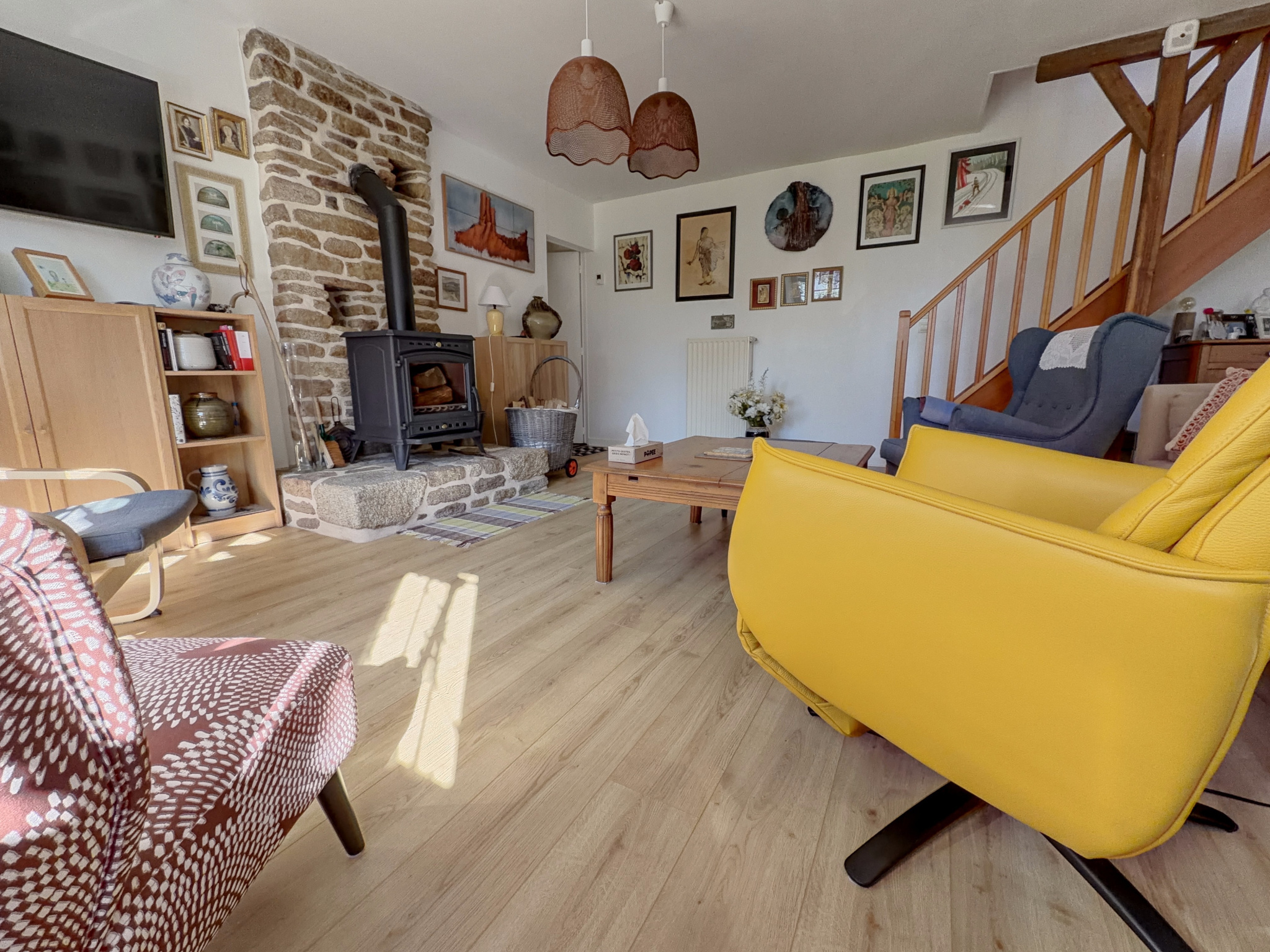 Au rez-de-chaussée, vous découvrirez une entrée desservant une agréable pièce de vie comprenant un salon et une salle à manger chaleureuse avec poêle à bois, idéale pour vos moments en famille. Une cuisine séparée, aménagée et équipée, complète cet espace de vie. Vous trouverez également une chambre avec sa salle d’eau, un WC indépendant, ainsi qu’un espace buanderie/chaufferie.