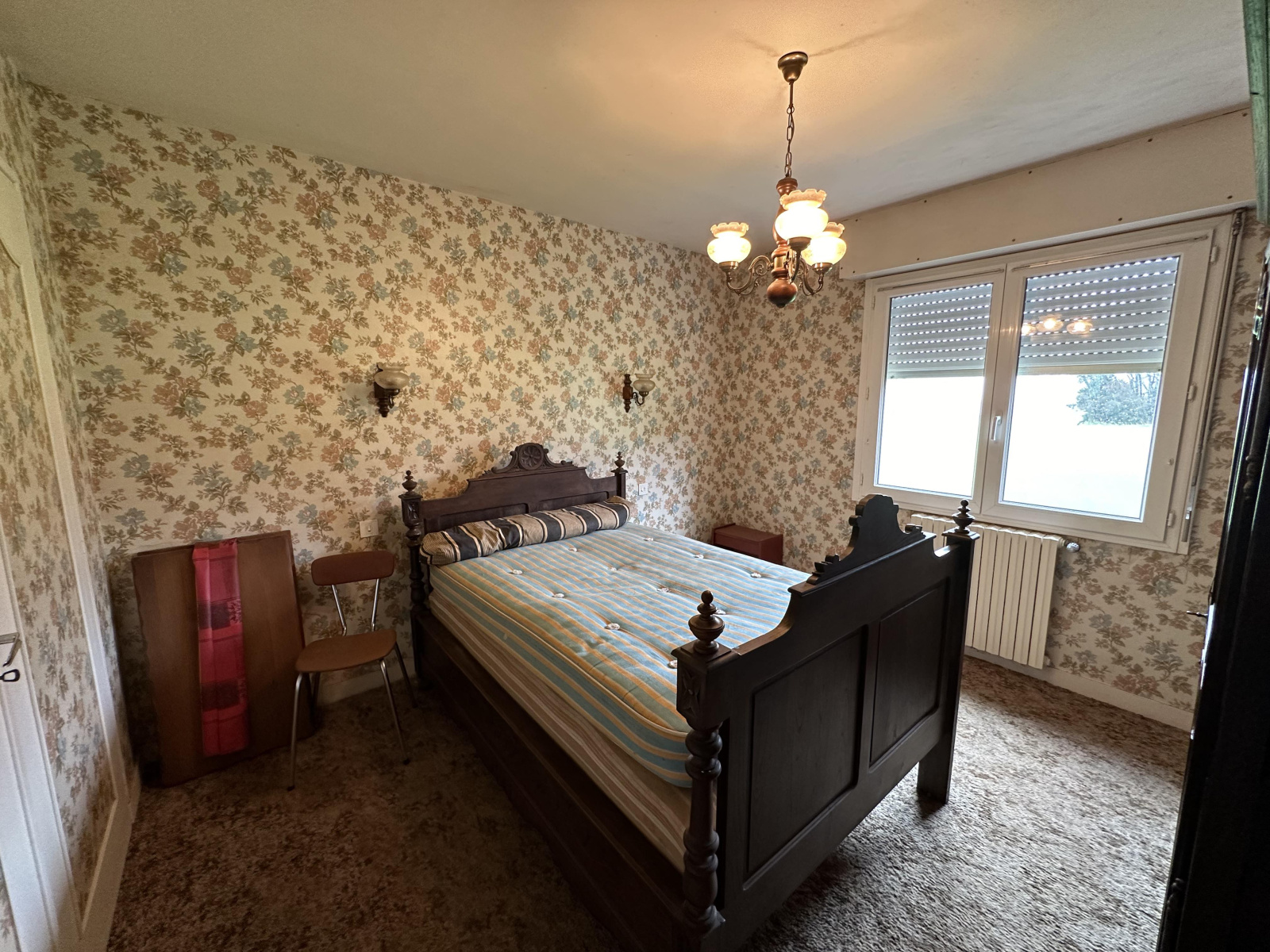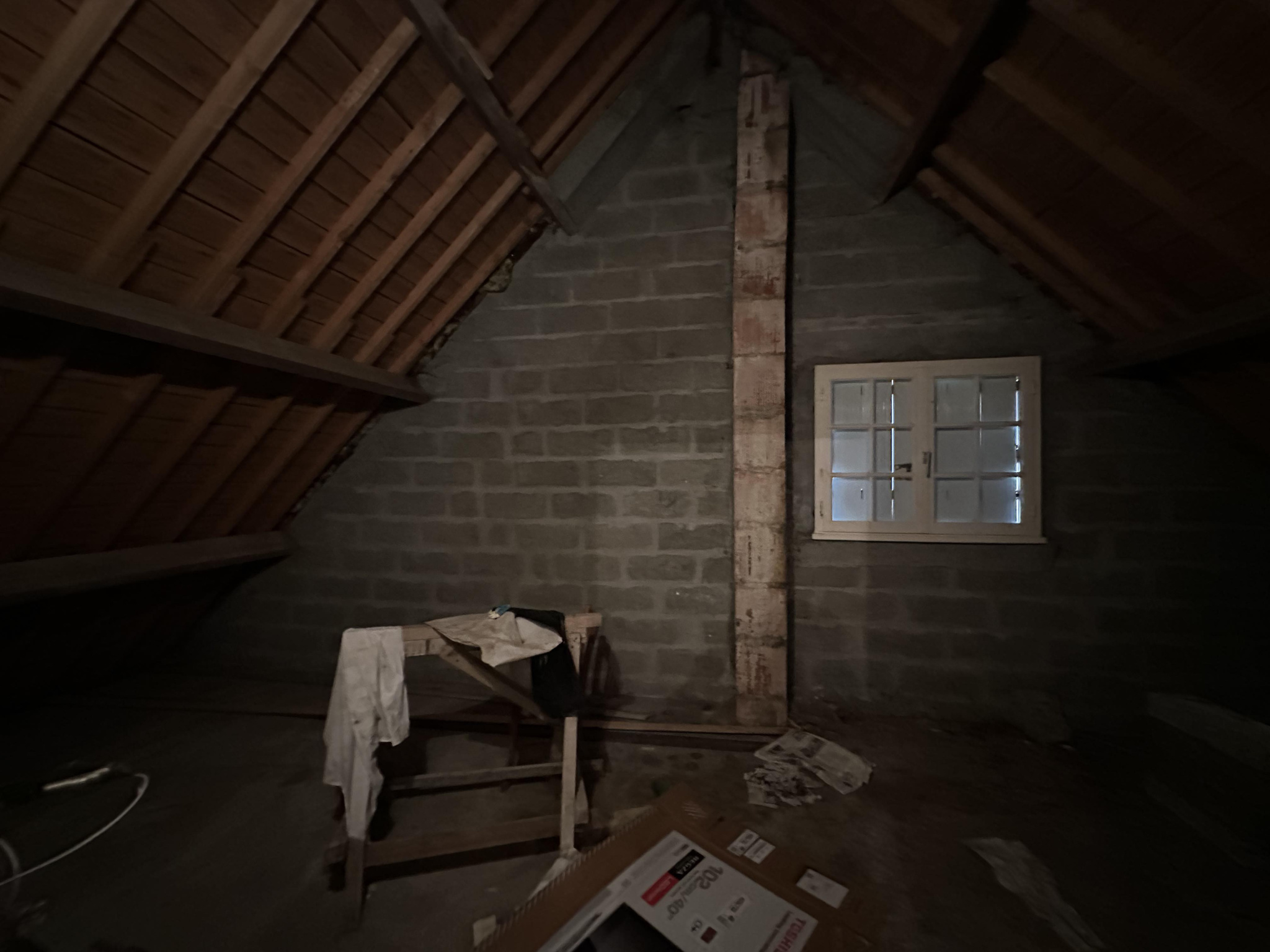 À l'étage : deux chambres, un grenier, une salle d'eau et un WC.