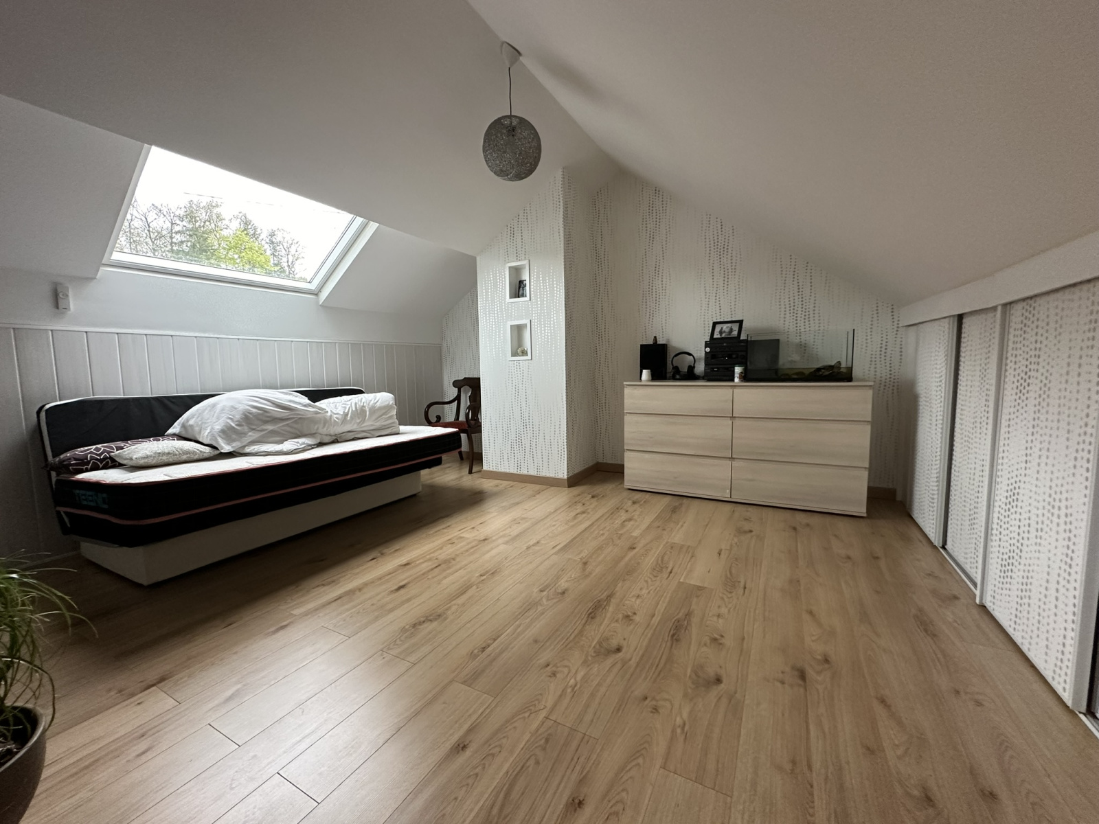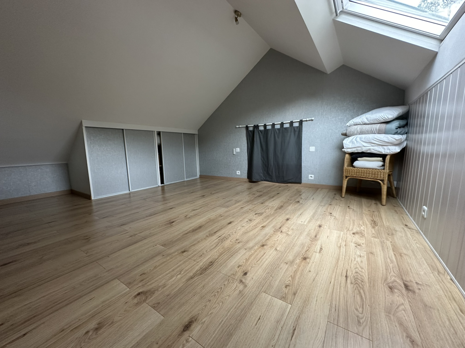 À l'étage : deux belles chambres avec rangement, une salle de jeu et une salle d'eau avec WC.