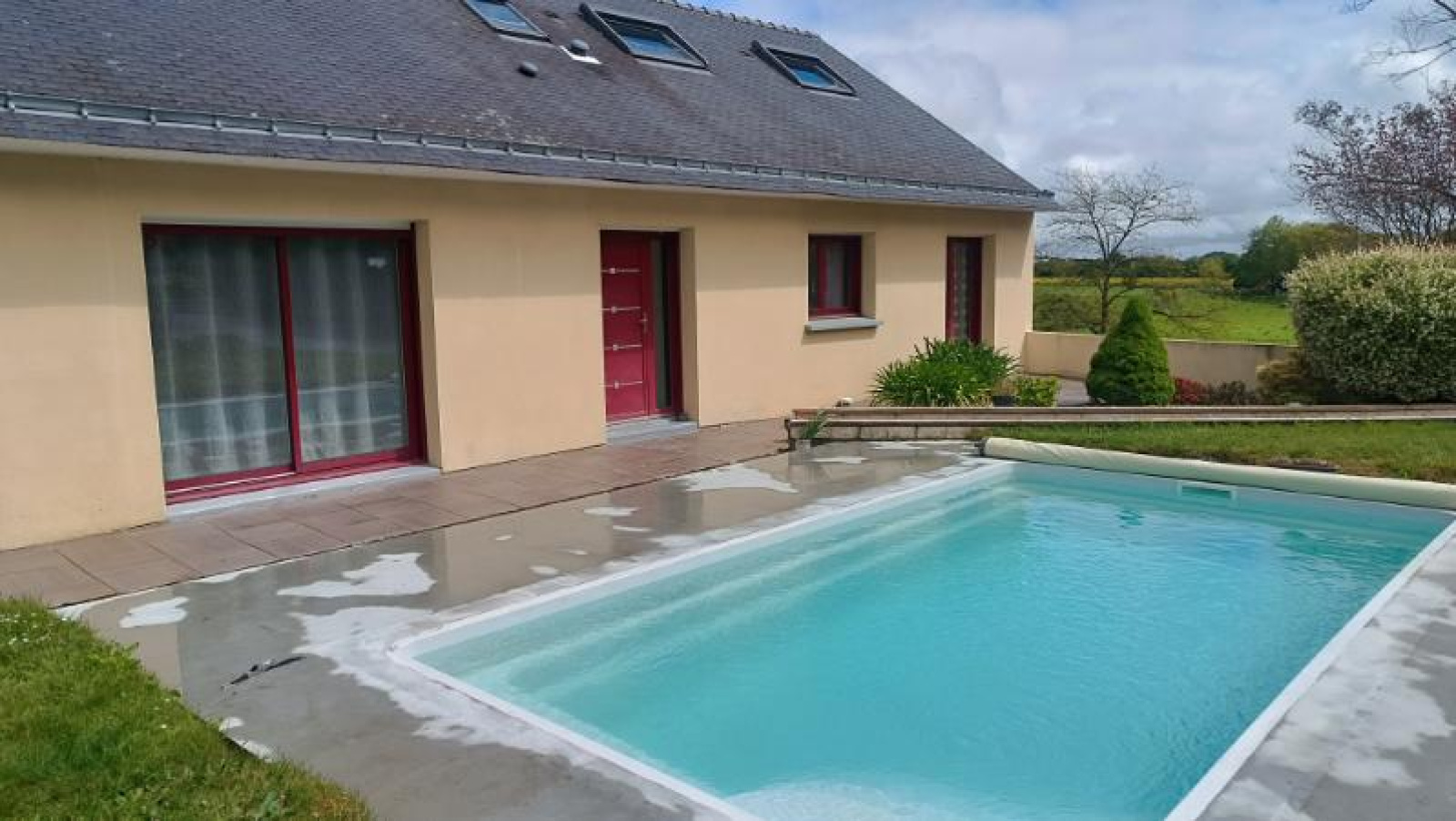 Belle maison de 2006 de 139 m² en campagne de Baud. Elle se compose :