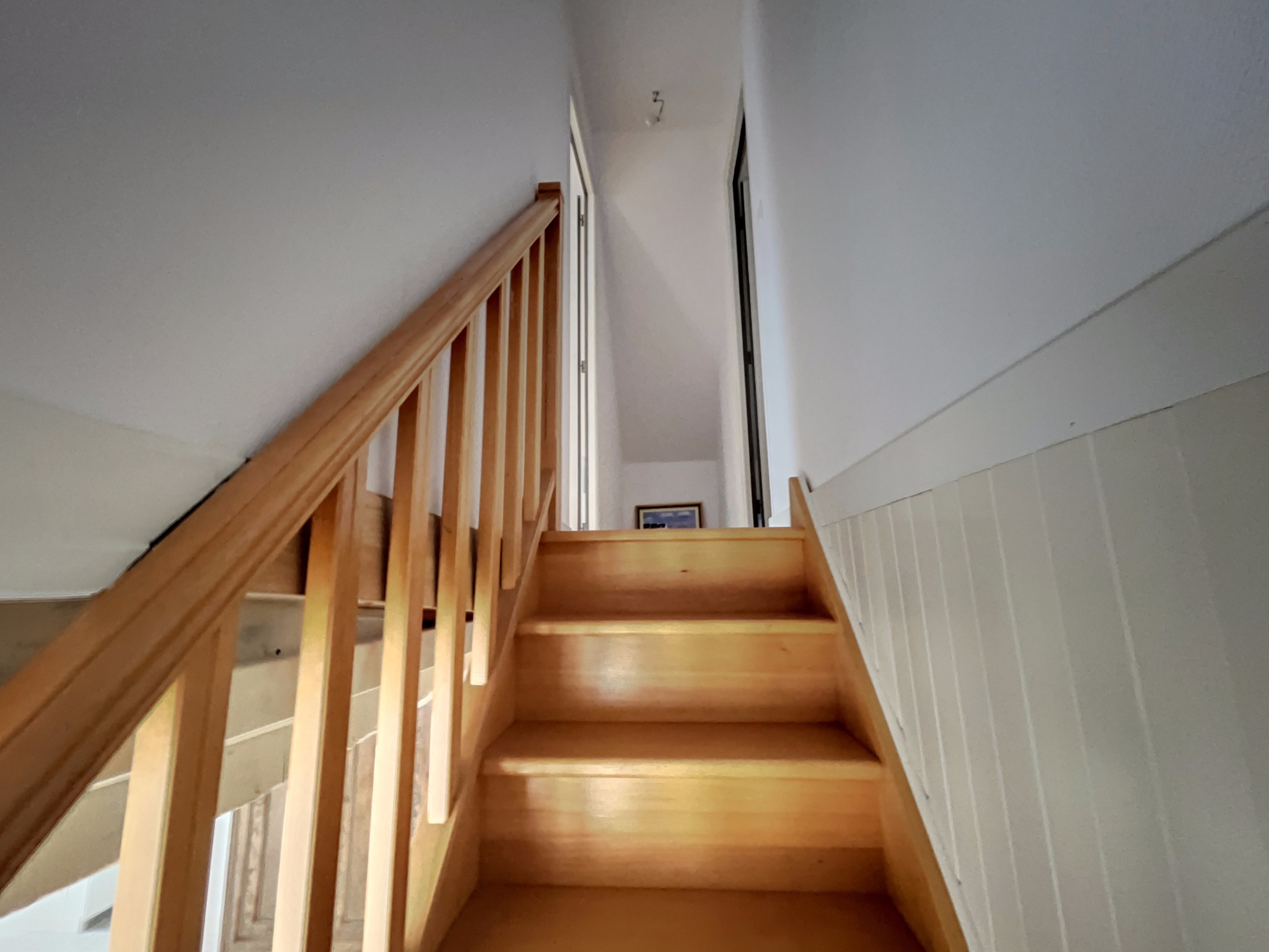 À l’étage, deux belles chambres aux volumes généreux composent un espace nuit chaleureux et bien séparé.