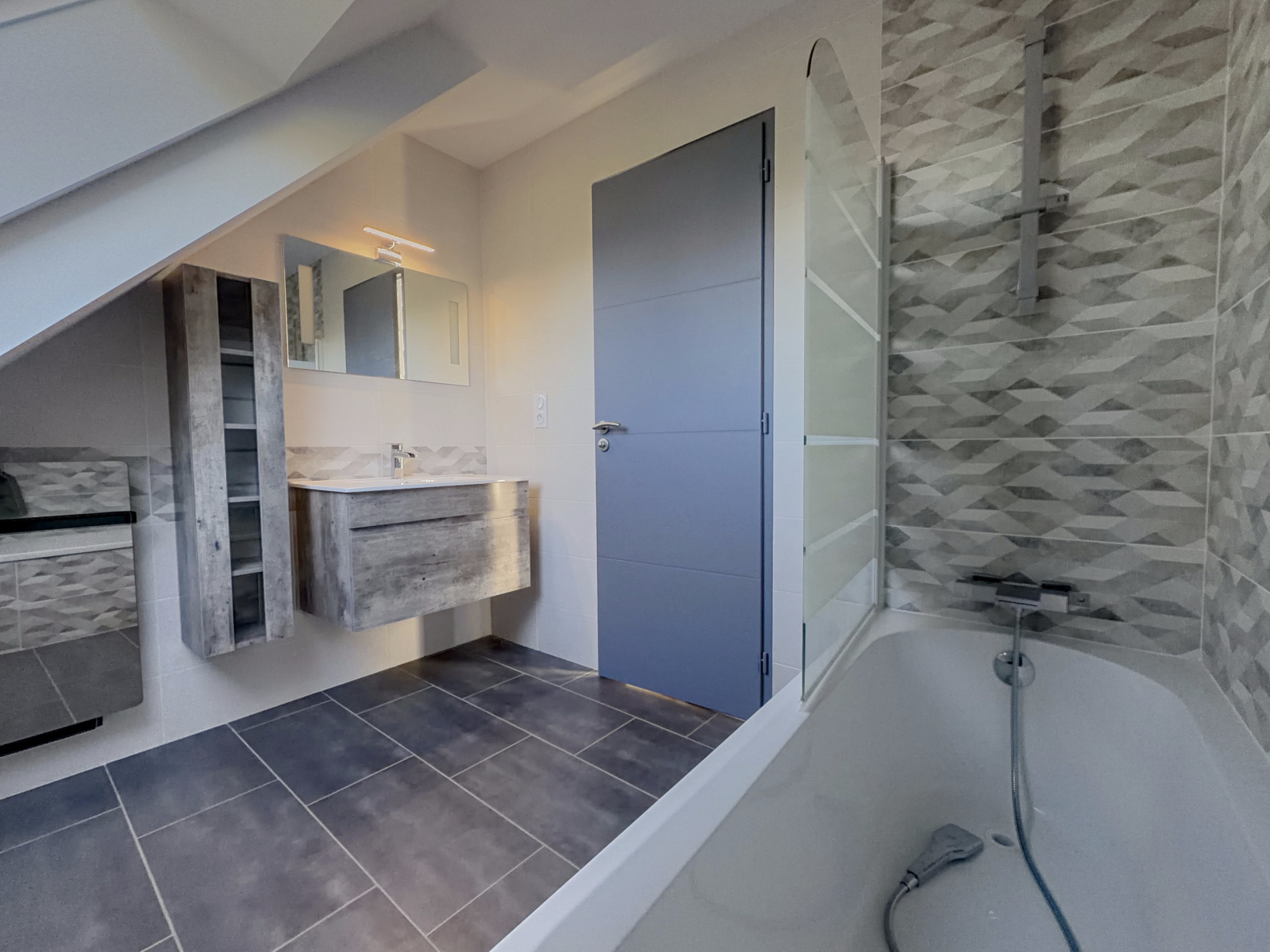 À l’étage, l’espace se poursuit avec deux chambres, une mezzanine offrant de multiples possibilités (bureau, coin détente…), une salle de bain et un WC.