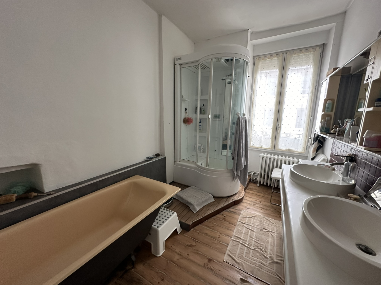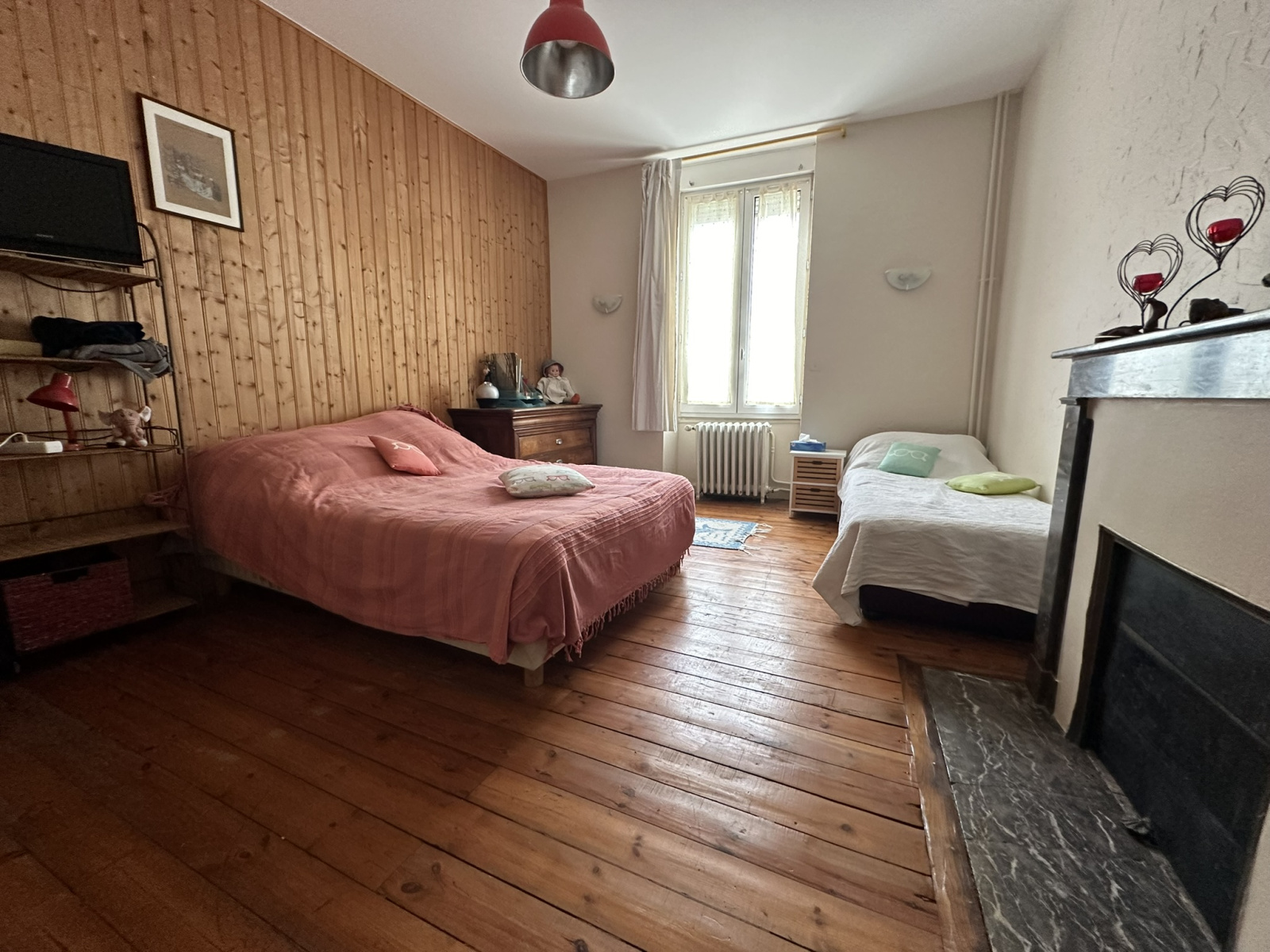 Au premier niveau : un couloir desservant trois belles chambres lumineuses, une salle de bain avec douche, une buanderie et un WC.