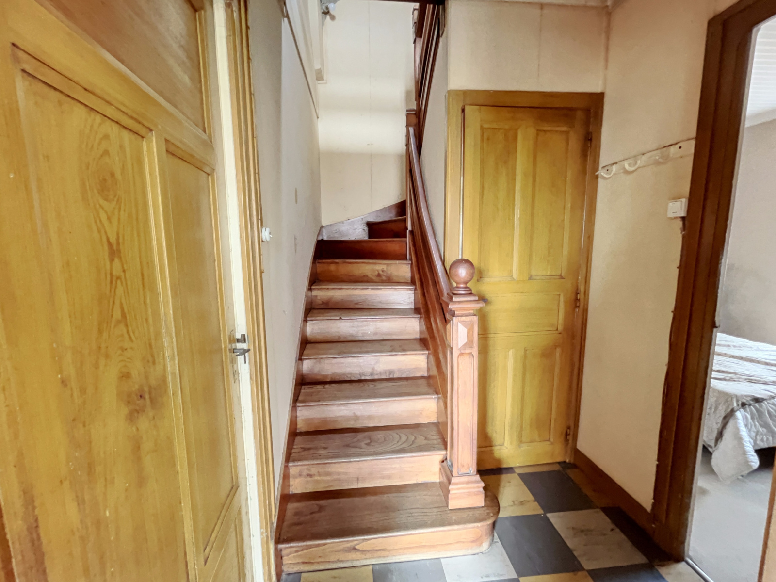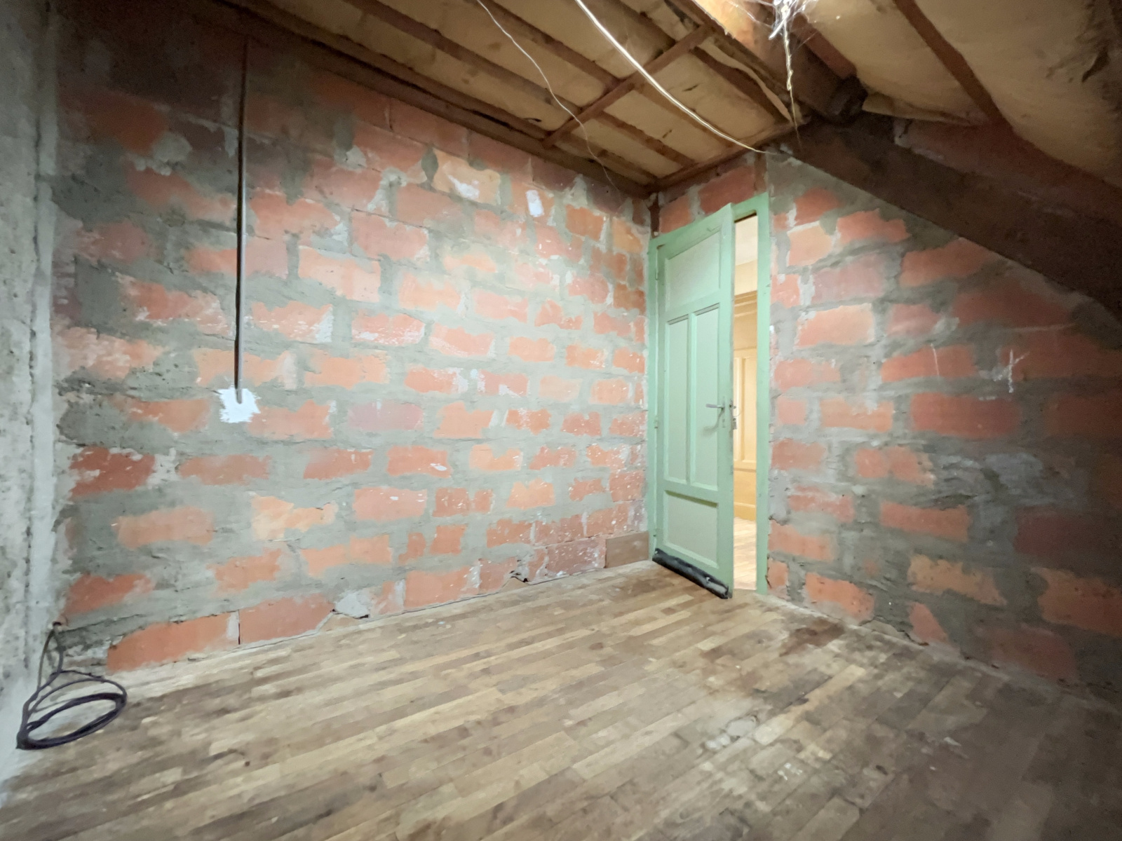 À l’étage : deux chambres, une salle de bains, et deux greniers aménageables.