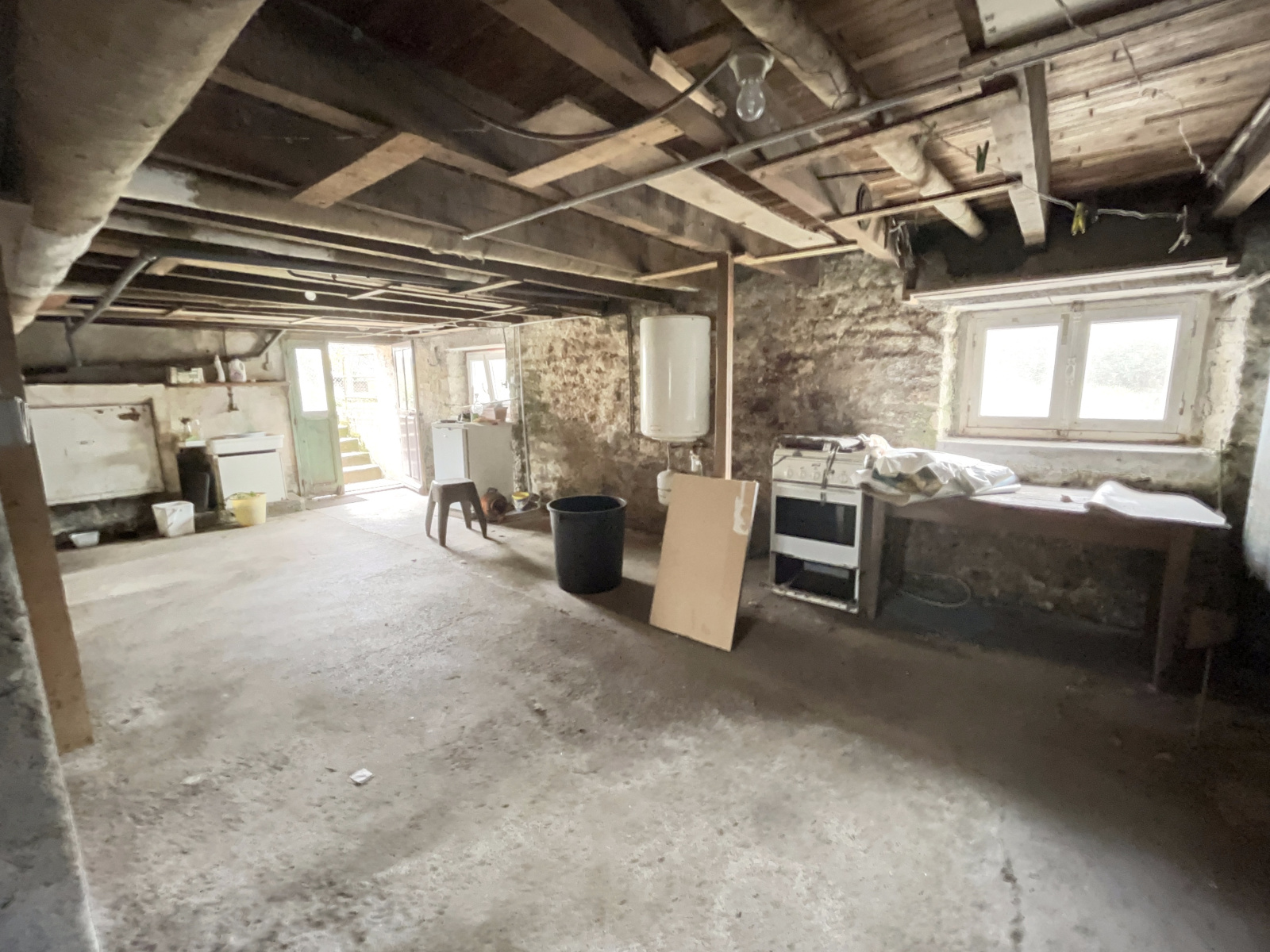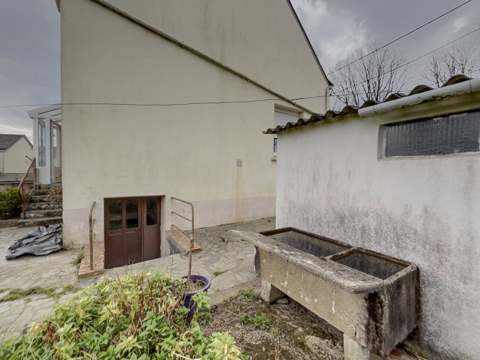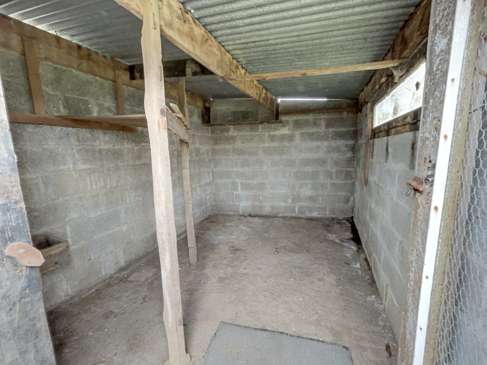 Un garage et un jardin avec un appentis en parpaing complètent ce bien.