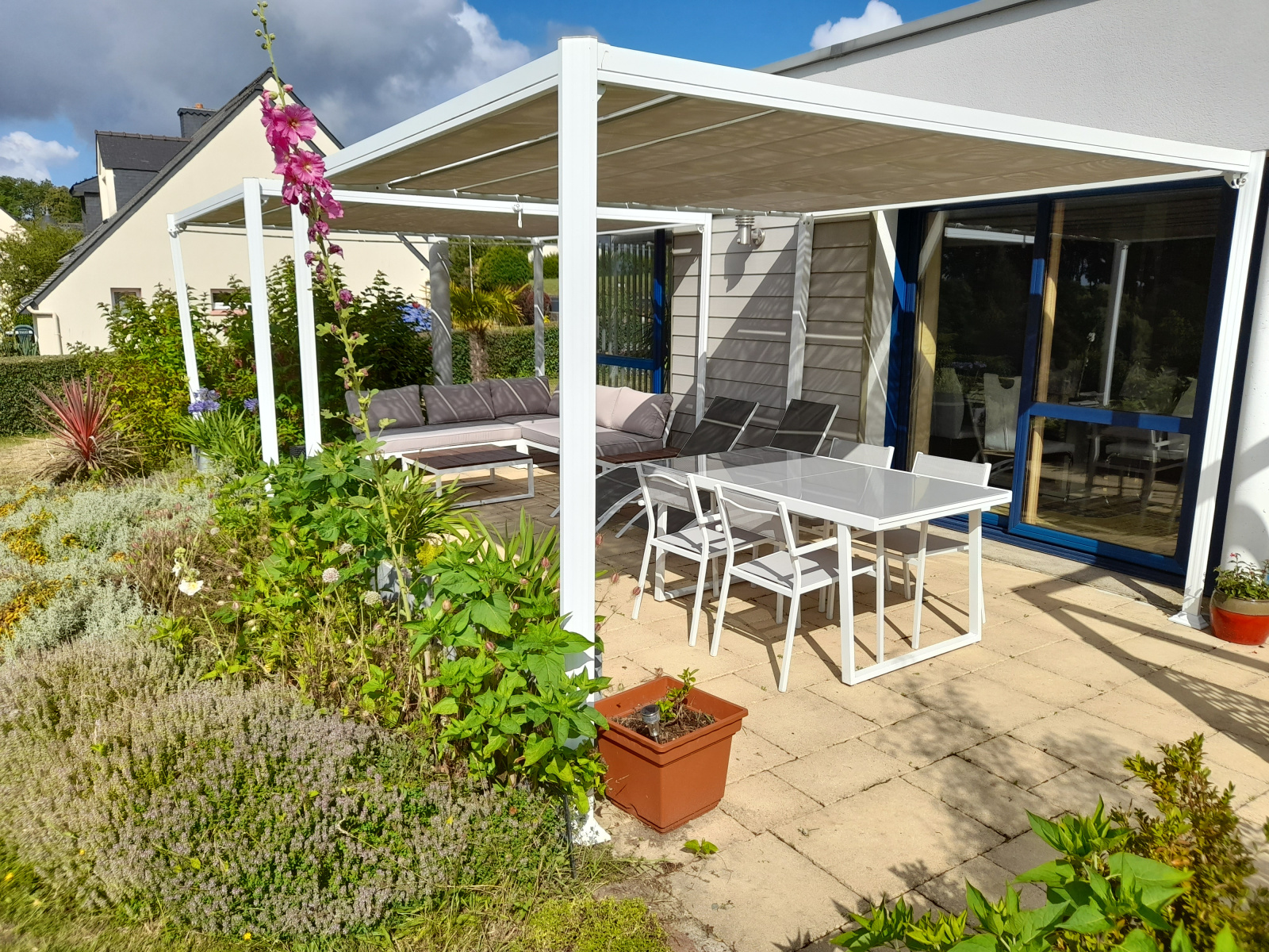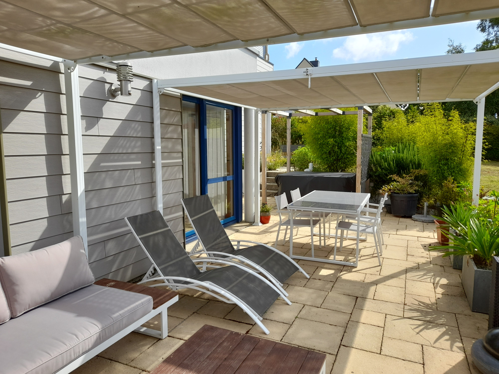 une belle terrasse avec pergolas