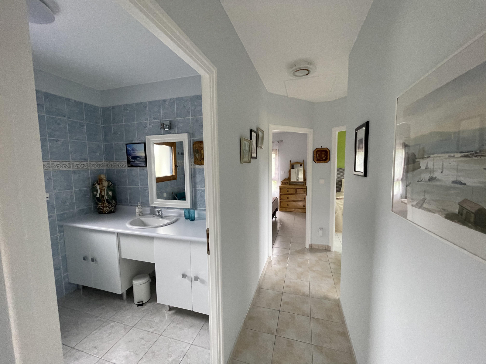 À l'étage : trois belles chambres, une salle de bain, un WC et une mezzanine.