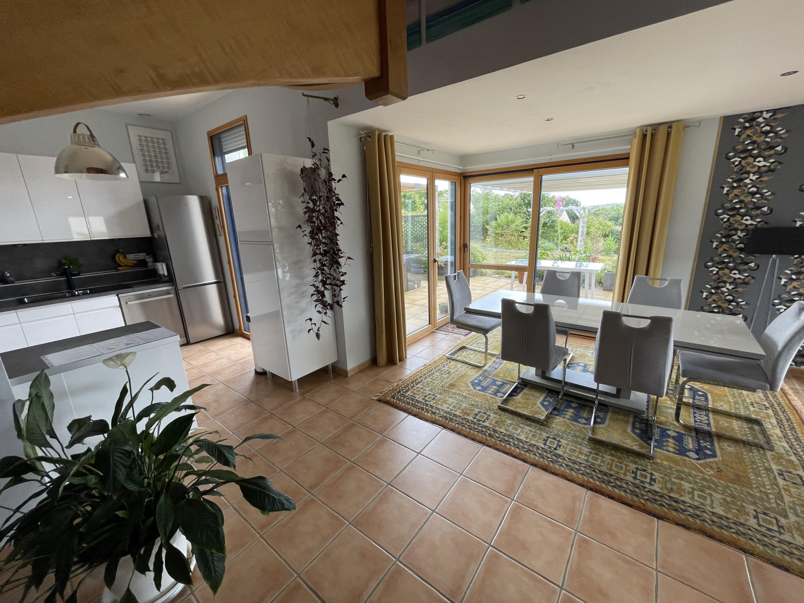 Au rez-de-chaussée : Un hall d'entrée desservant une superbe pièce de vie exposée plein sud avec cuisine aménagée et équipée, une salle à manger, un salon, une suite parentale avec salle d'eau, une pièce pouvant être aménagée en dressing ou en bureau et un WC séparé.