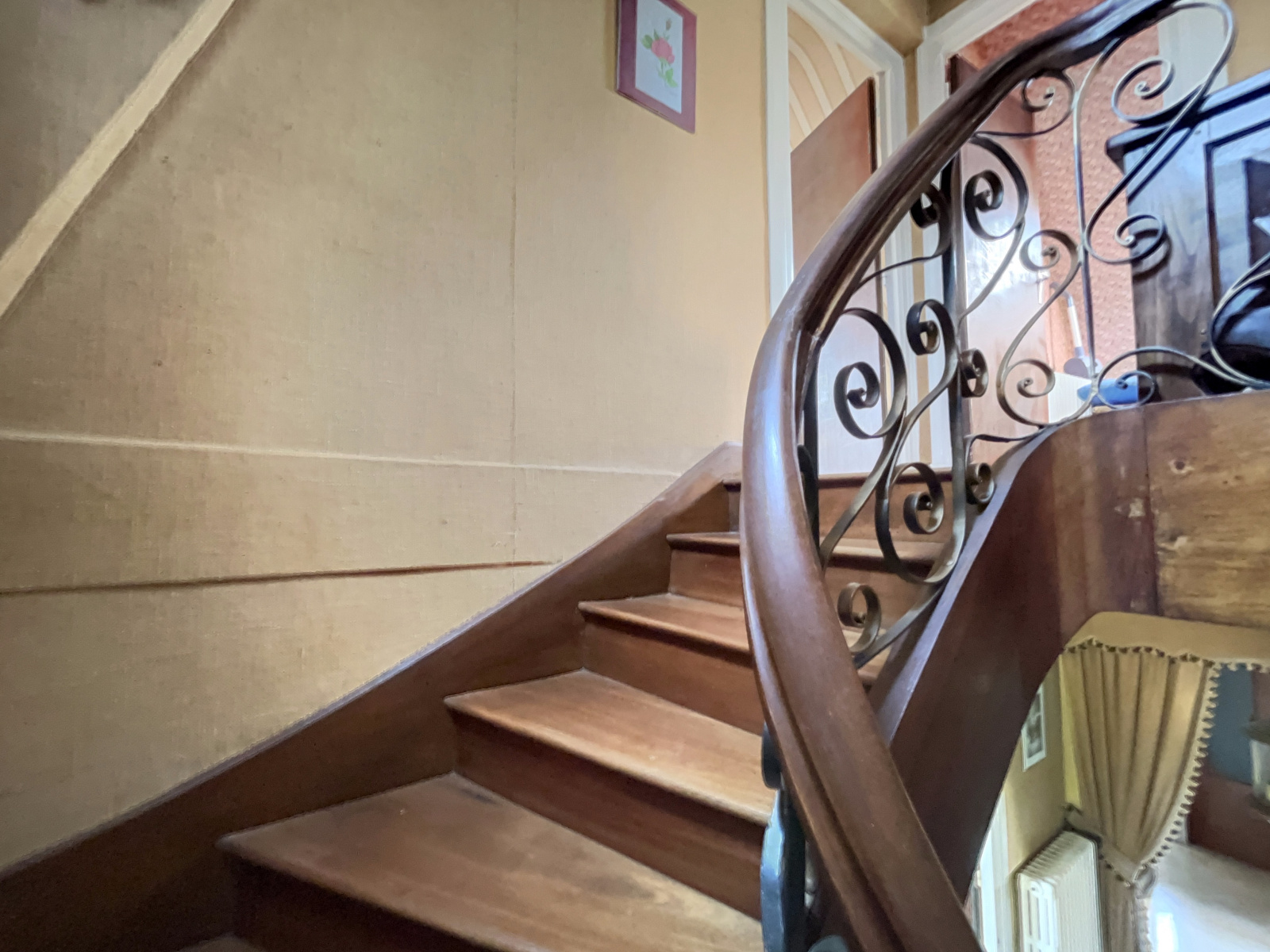 Au rez-de-chaussée : une entrée, un salon cosy avec cheminée, une cuisine, un bureau, une salle de bains, des WC séparés et une grande pièce de vie lumineuse.