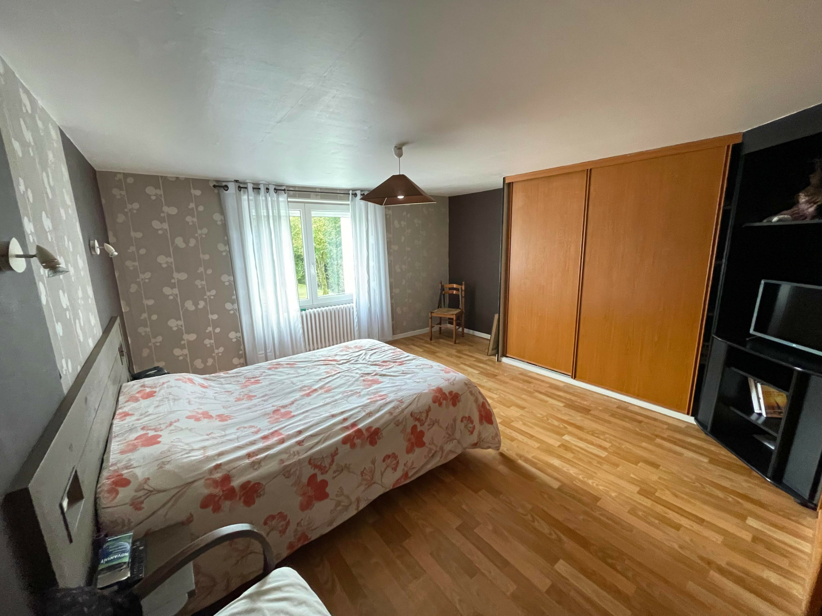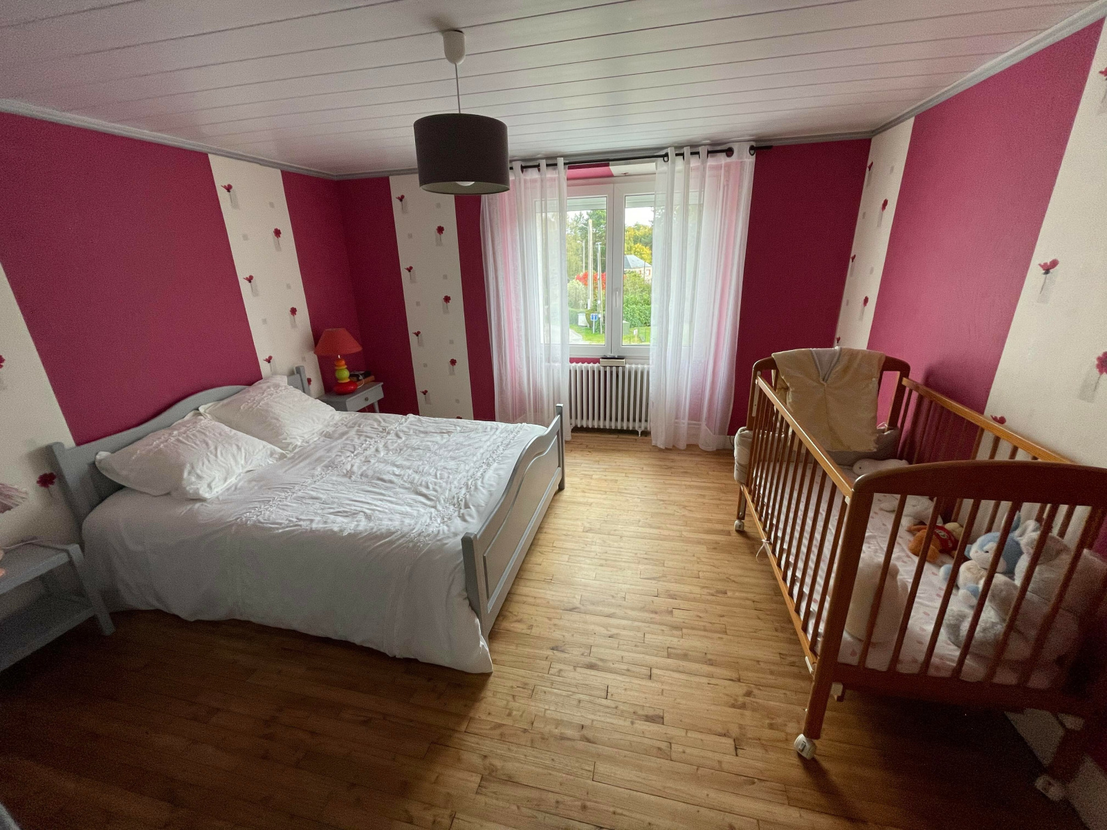 A l'étage : Trois grandes et lumineuses chambres et une salle de bain.