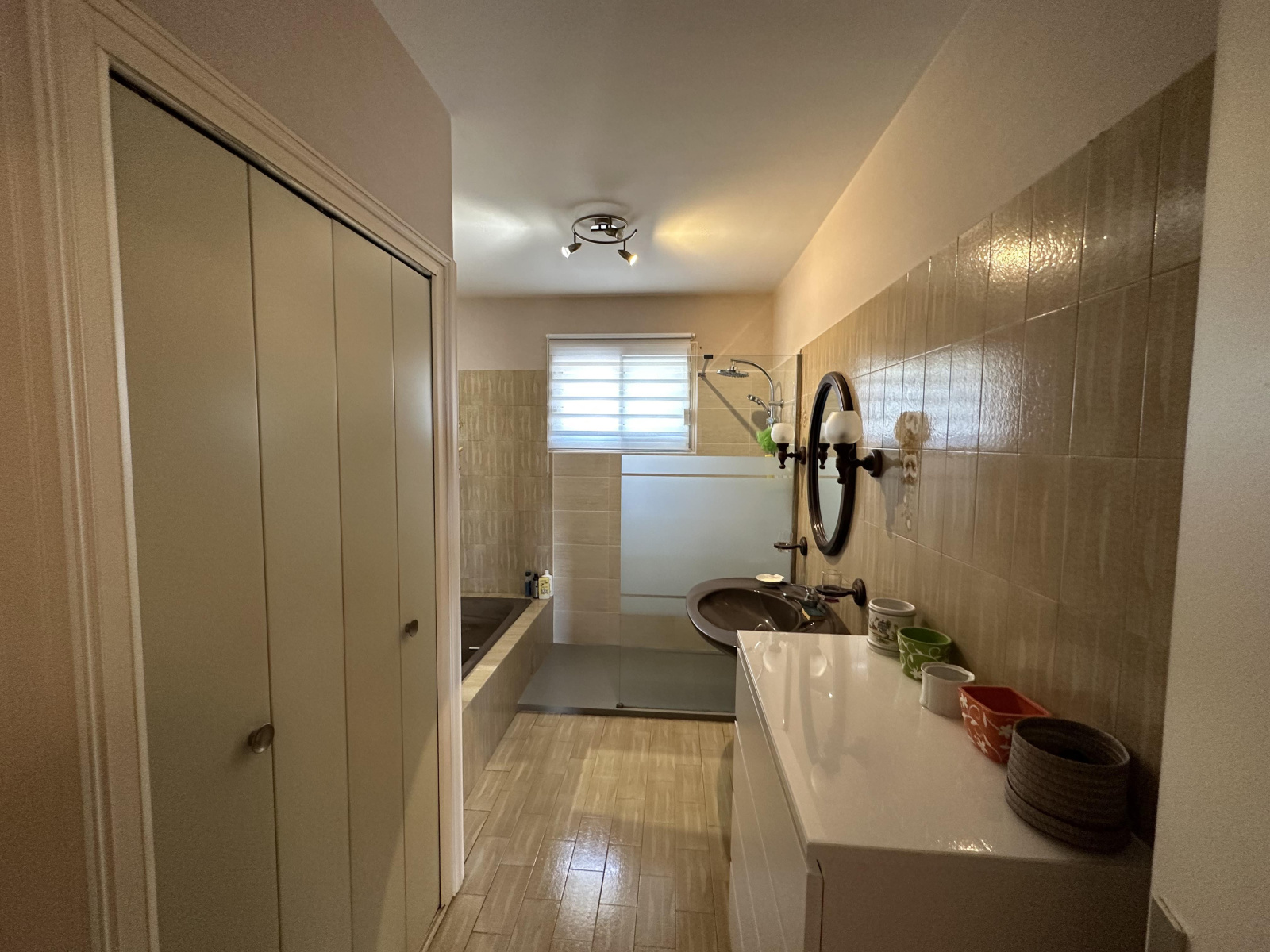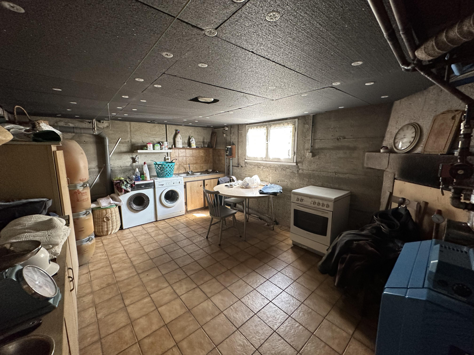 Sous sol complet comprenant : double garage, chaufferie, buanderie, cave et atelier.