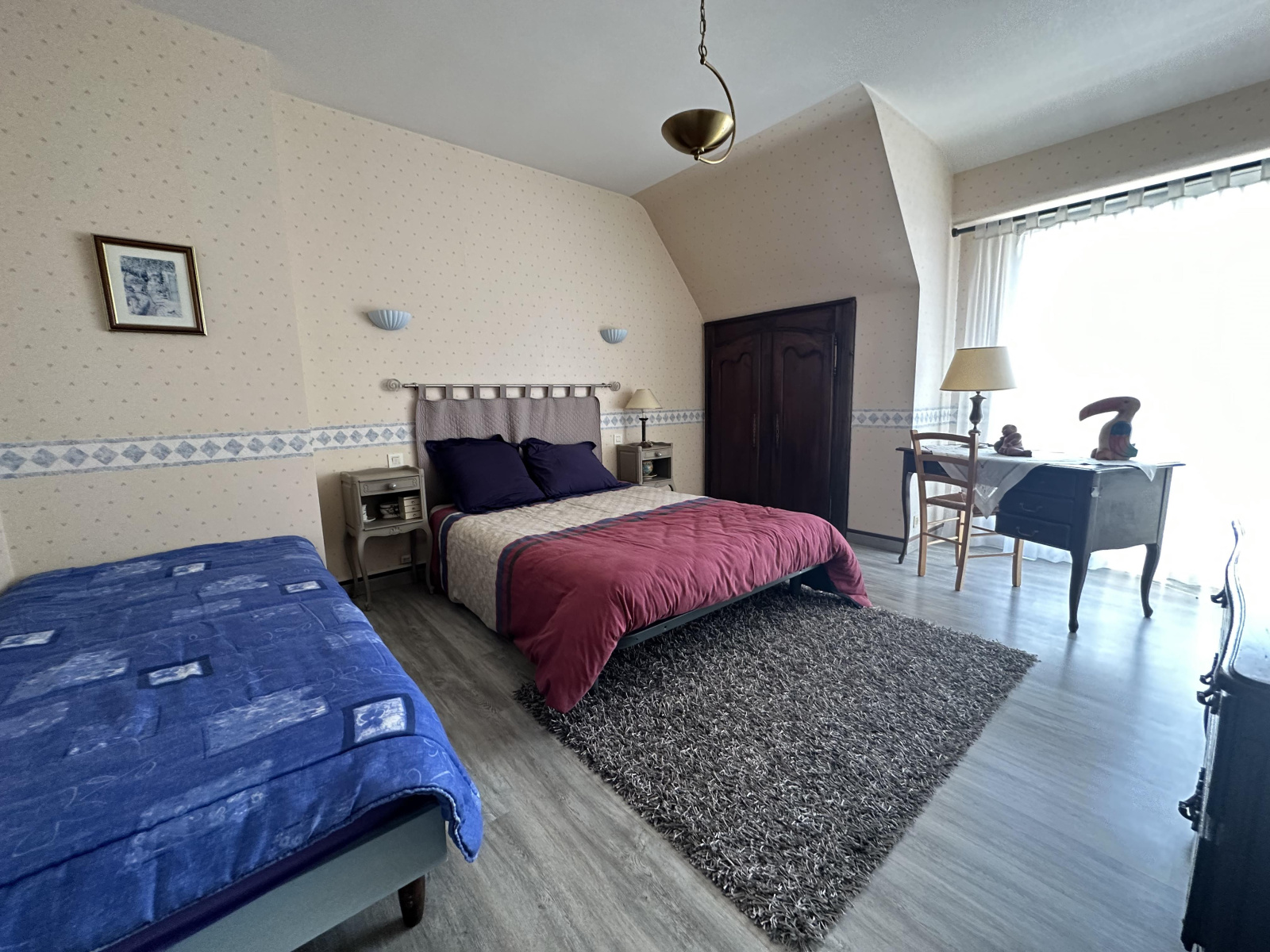 A l'étage : 3 belles chambres, une salle de jeux, un grenier, salle d'eau,wc.