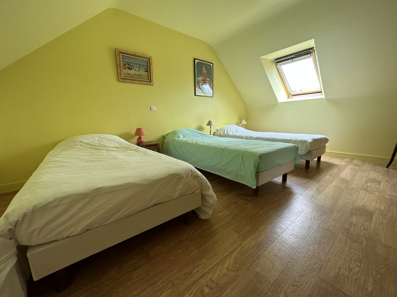 À l’étage : deux chambres, salle d’eau, WC, dégagement.