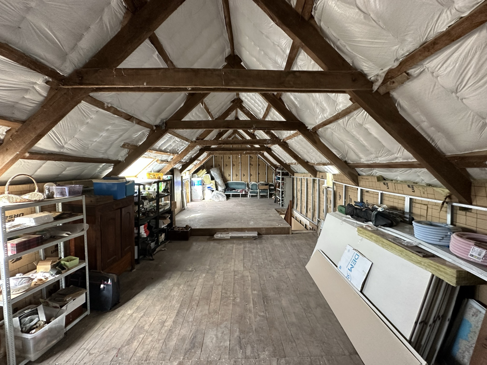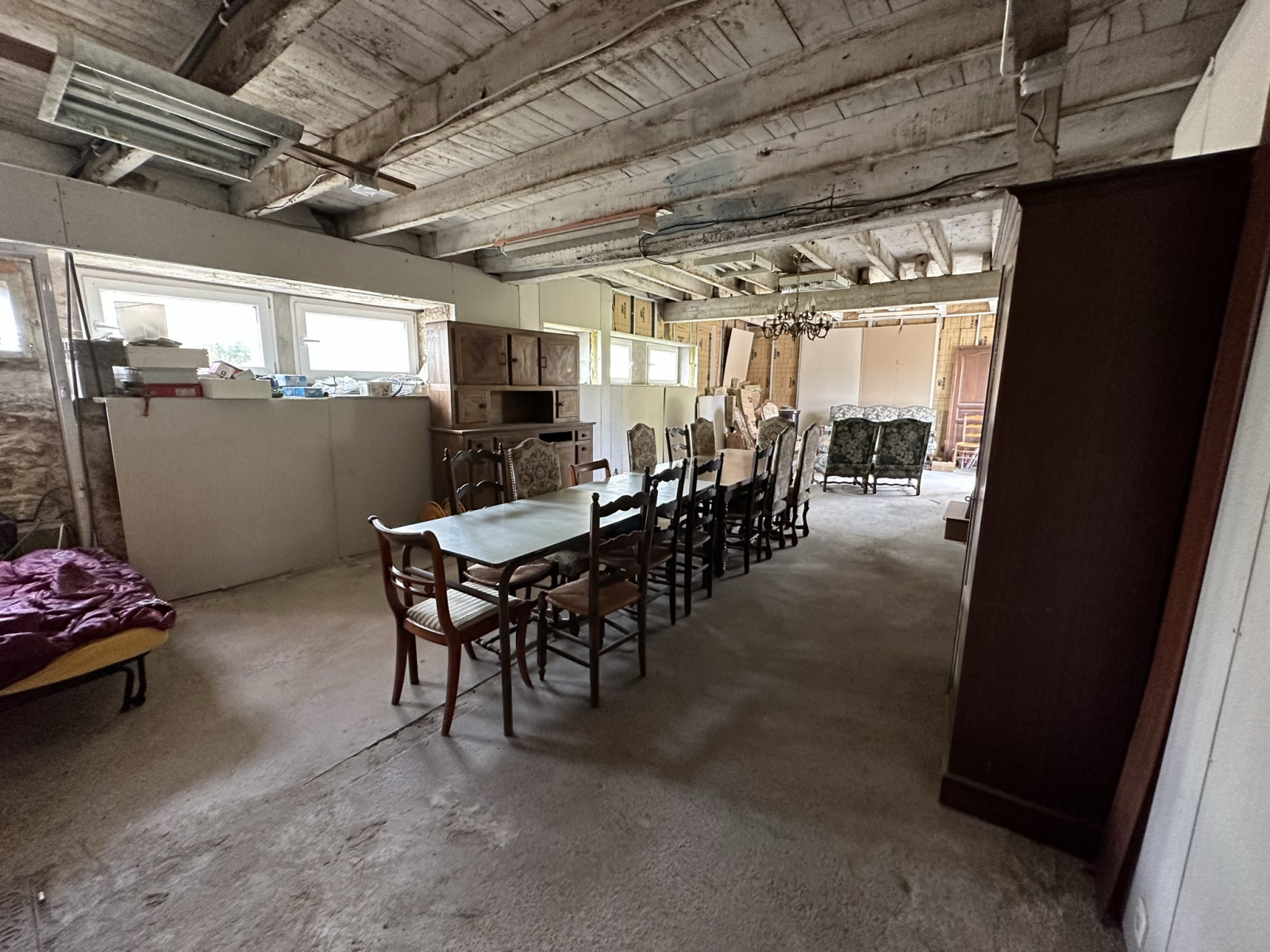 Une étable aménageable de 55 m2 au sol sur dalle béton et grenier isolé de 85 m2.