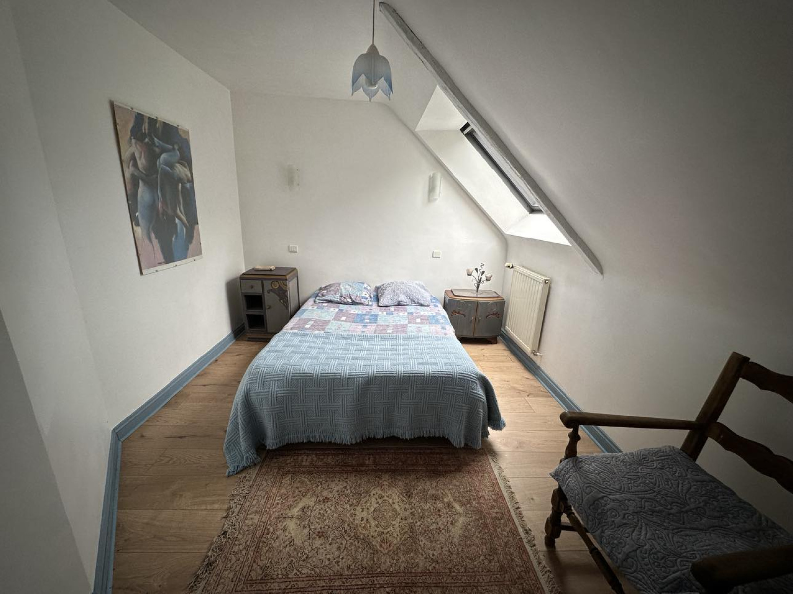 au premier : quatre chambres, une salle d'eau, une salle de bains, un WC, une mezzanine.