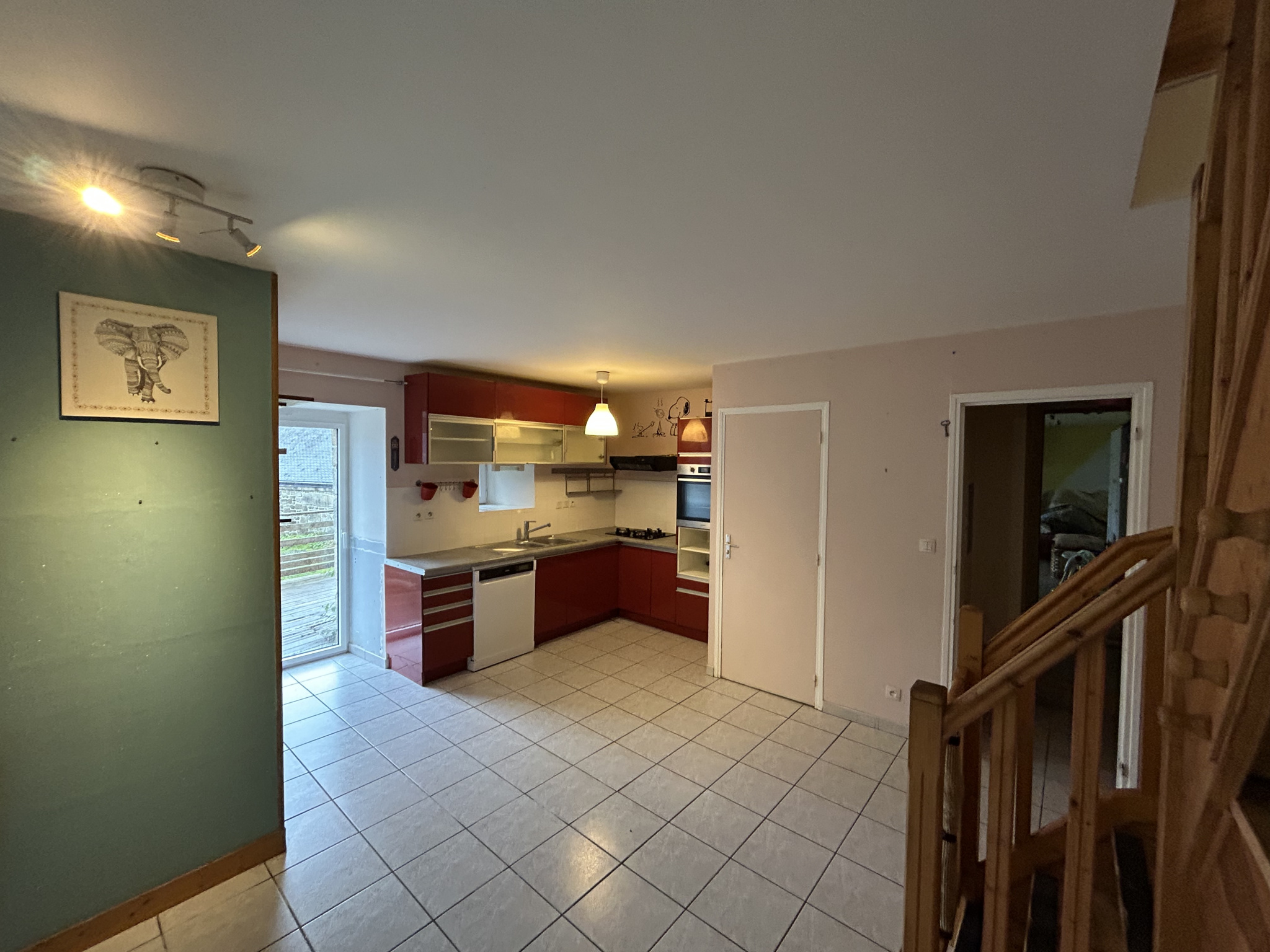 Au rez-de-chaussée, vous trouverez une grande pièce de vie avec cuisine ouverte, une cheminée avec poêle à bois et un ancien four à pain. Une seconde pièce, équipée d’un point d’eau et pouvant accueillir une cuisine, comprend également une cheminée avec poêle à bois ainsi qu’un WC. Cet espace permet d’envisager la création d’une suite parentale avec salle de bains et dressing.