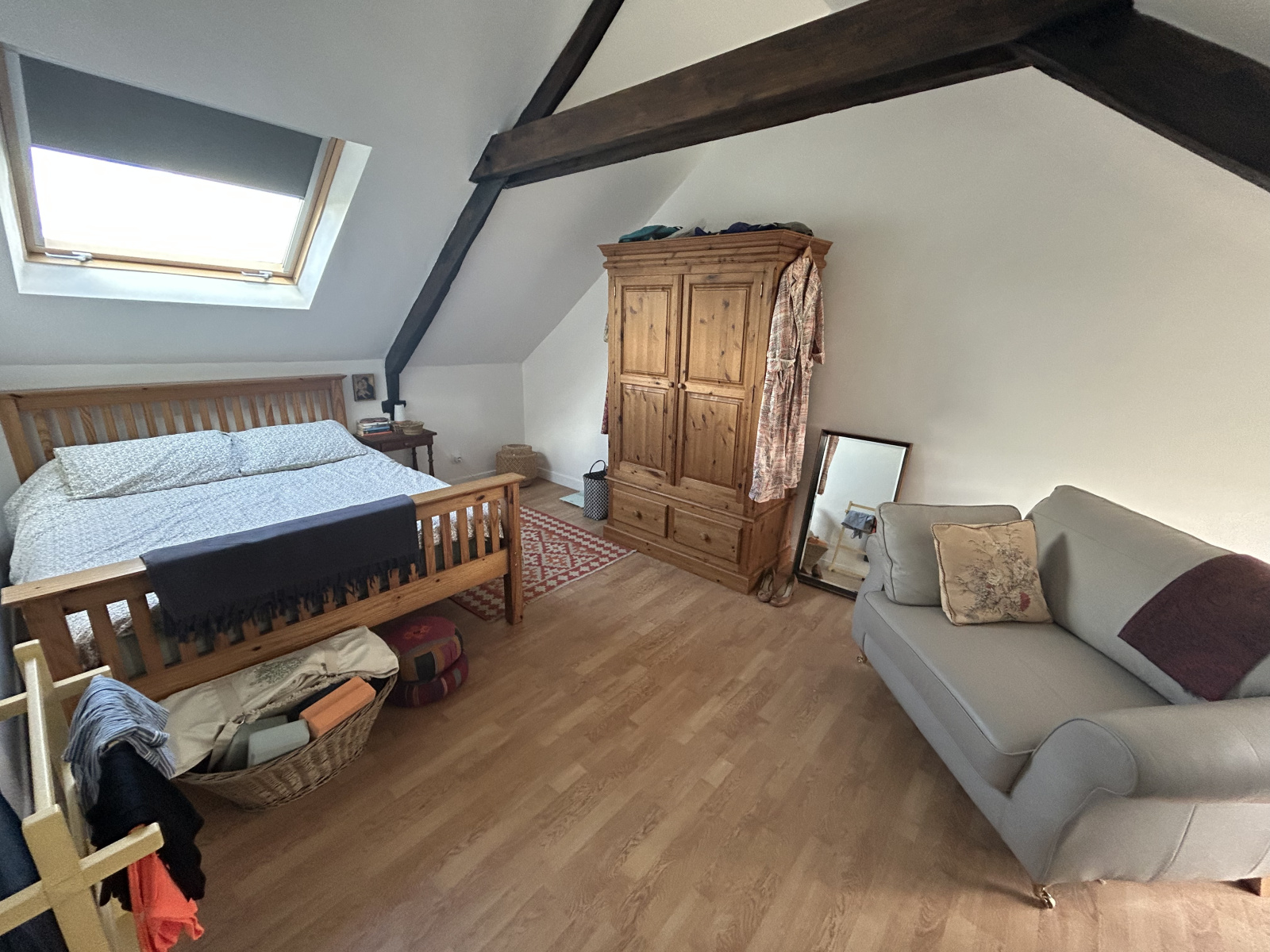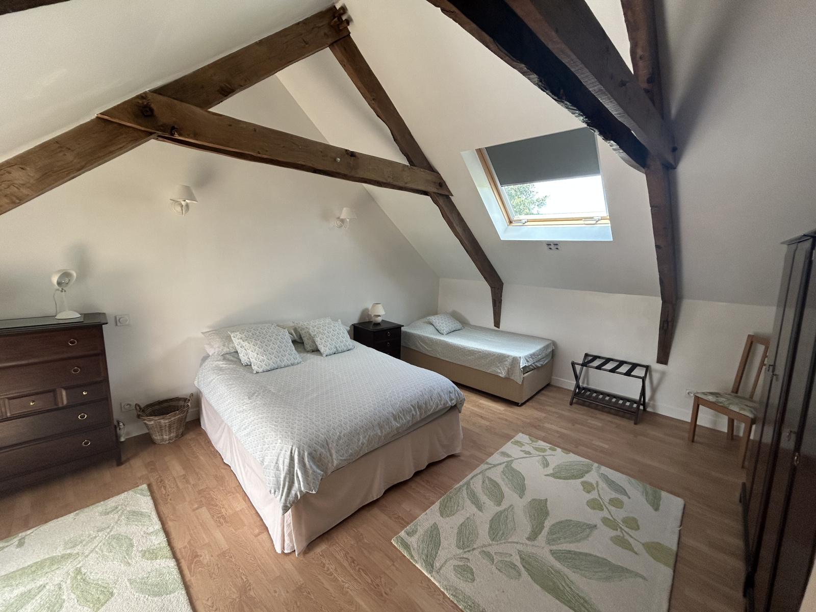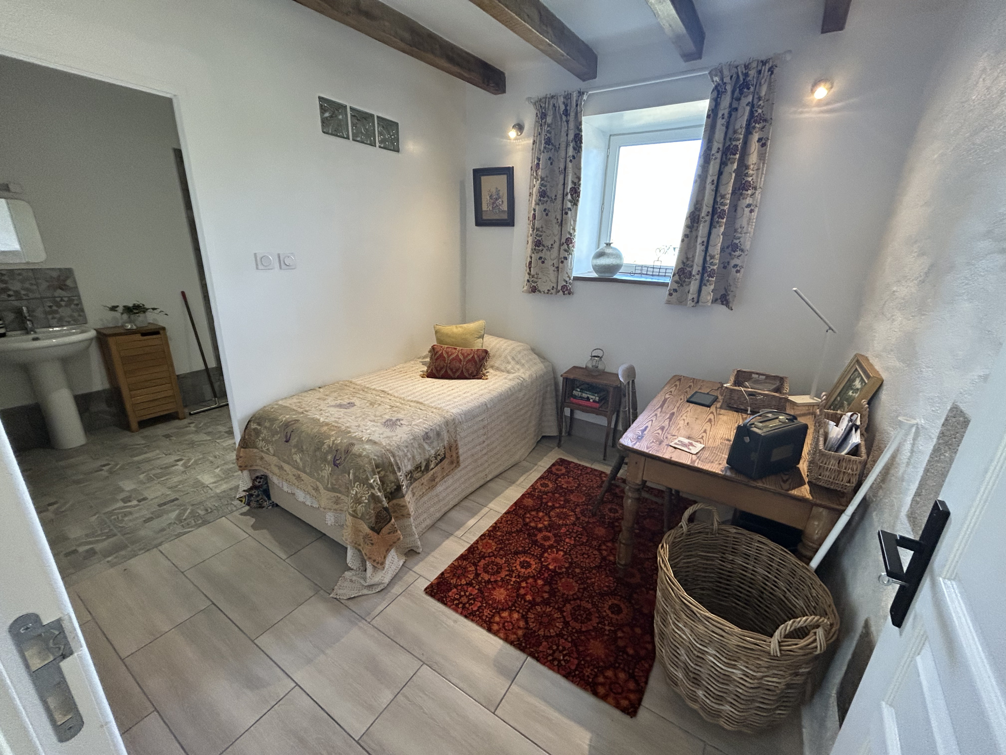Le second gîte dispose au rez-de-chaussée d’un salon, d’une cuisine, d’une chambre et d’une salle d’eau avec WC ; l’étage offre deux chambres supplémentaires, une salle de bain et un WC.