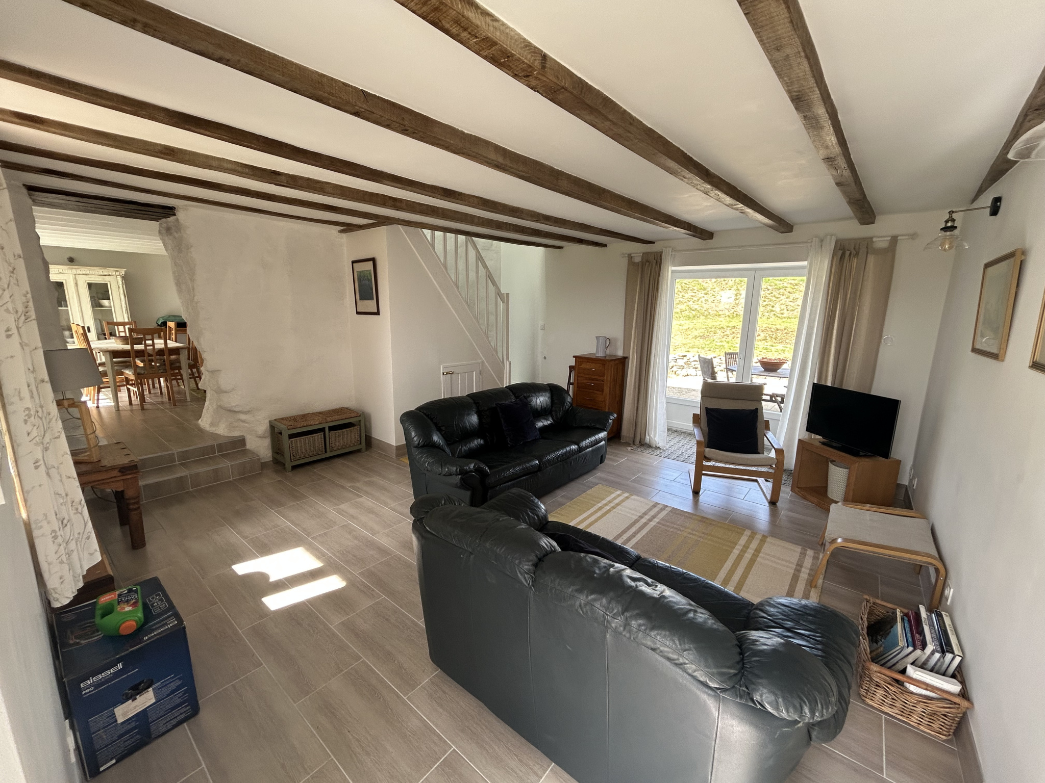 Le premier gîte propose une pièce de vie avec cuisine et salon au rez-de-chaussée, et deux chambres avec salle d’eau et WC à l’étage.
