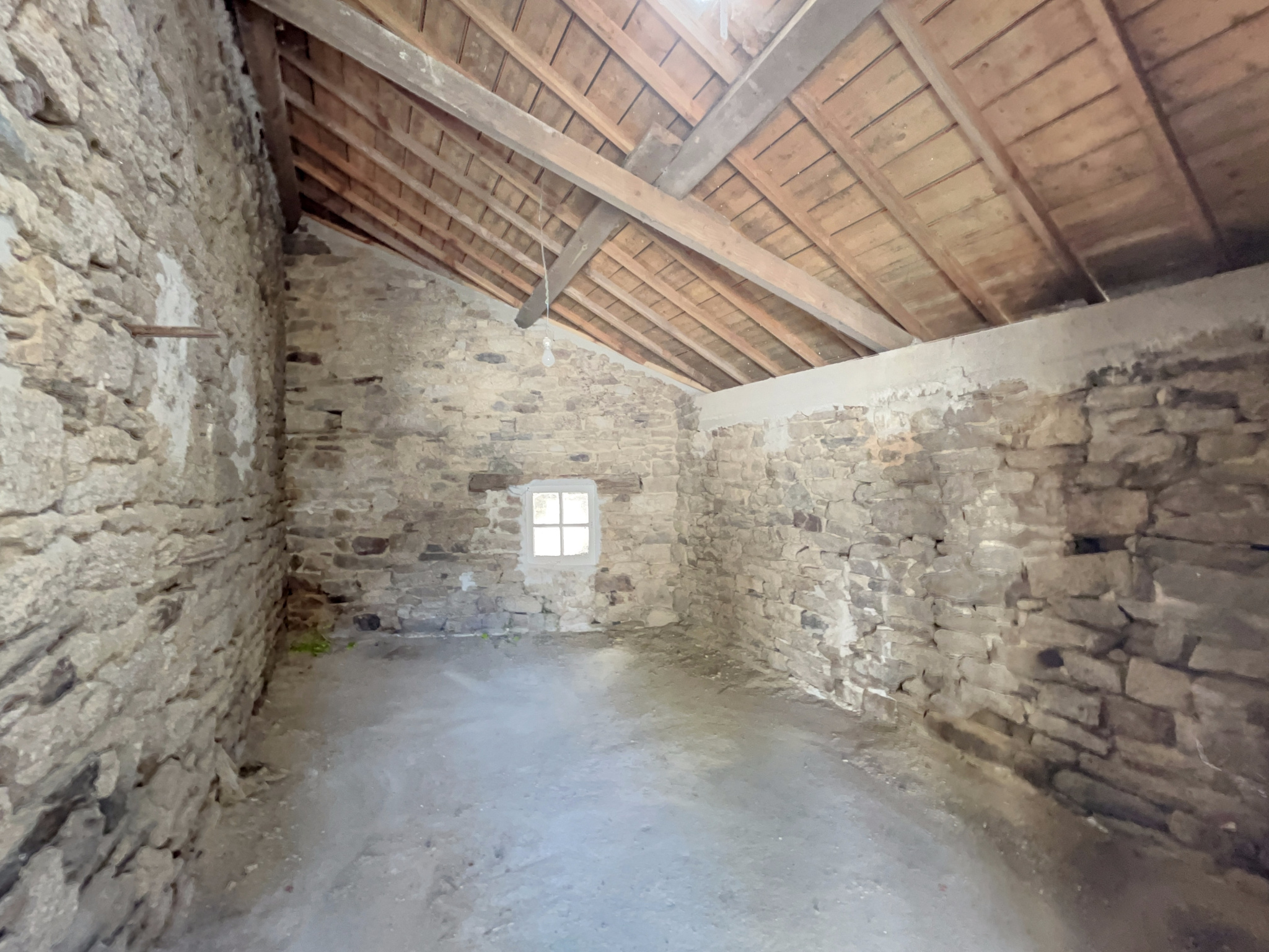Il se compose d’une charmante longère en pierre d’environ 106 m² comprenant : une entrée, WC, cuisine, salle avec cheminée et cellier.