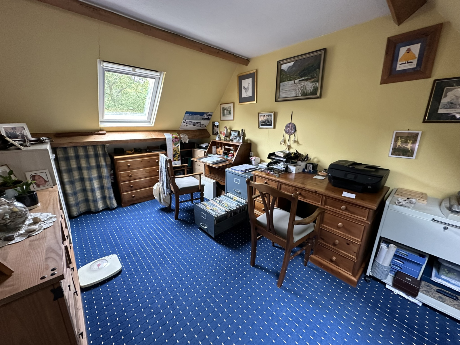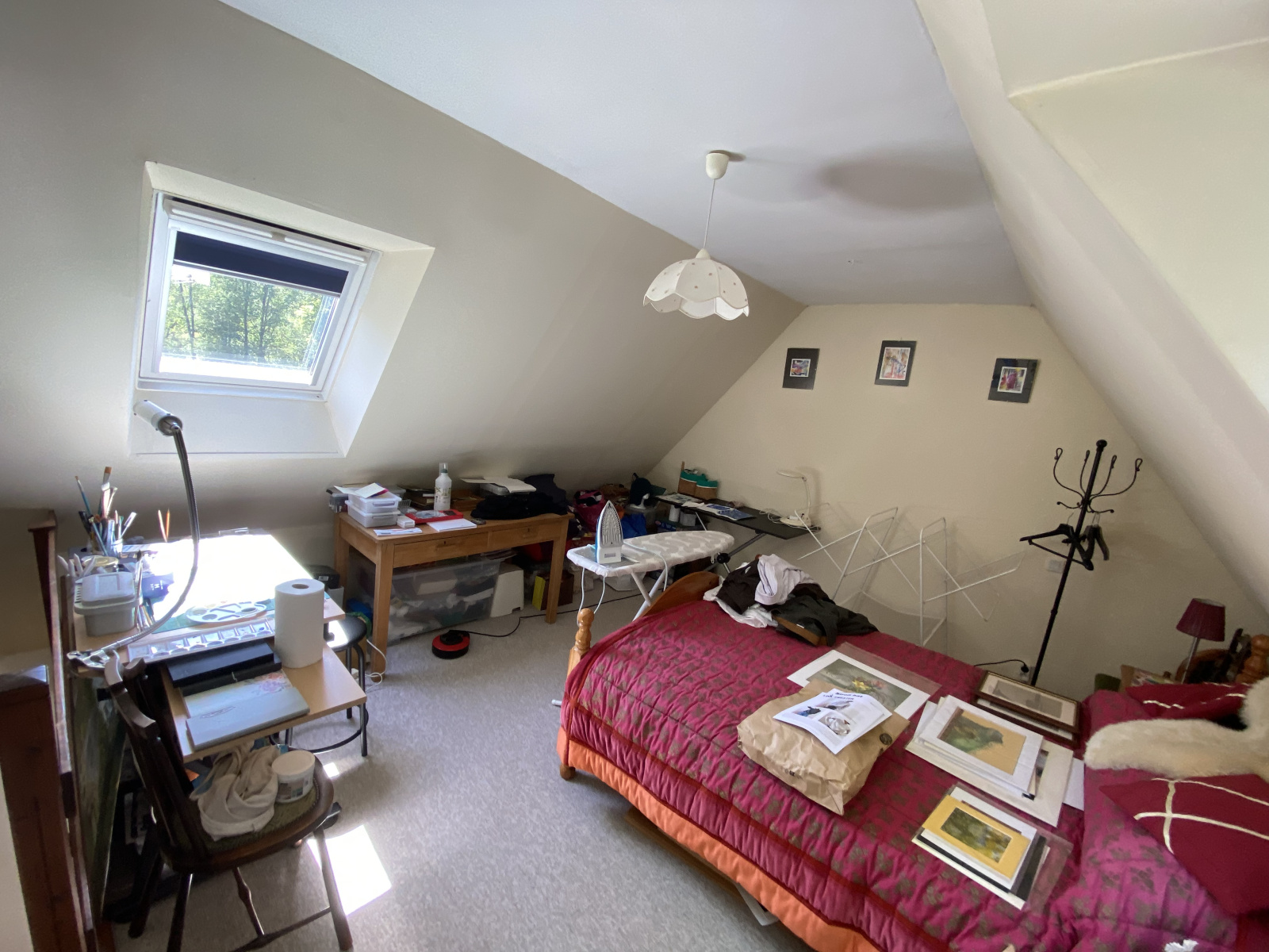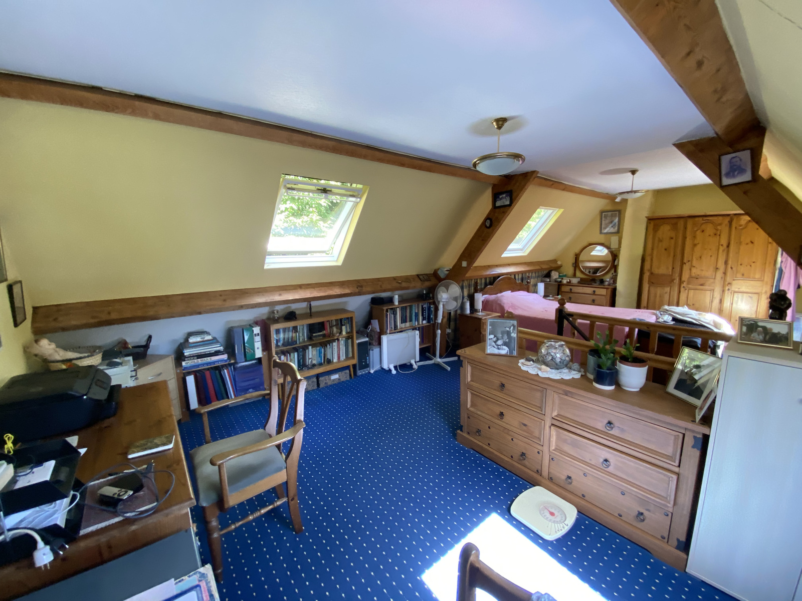 À l’étage : deux chambres, dont une disposant d’un espace bureau.