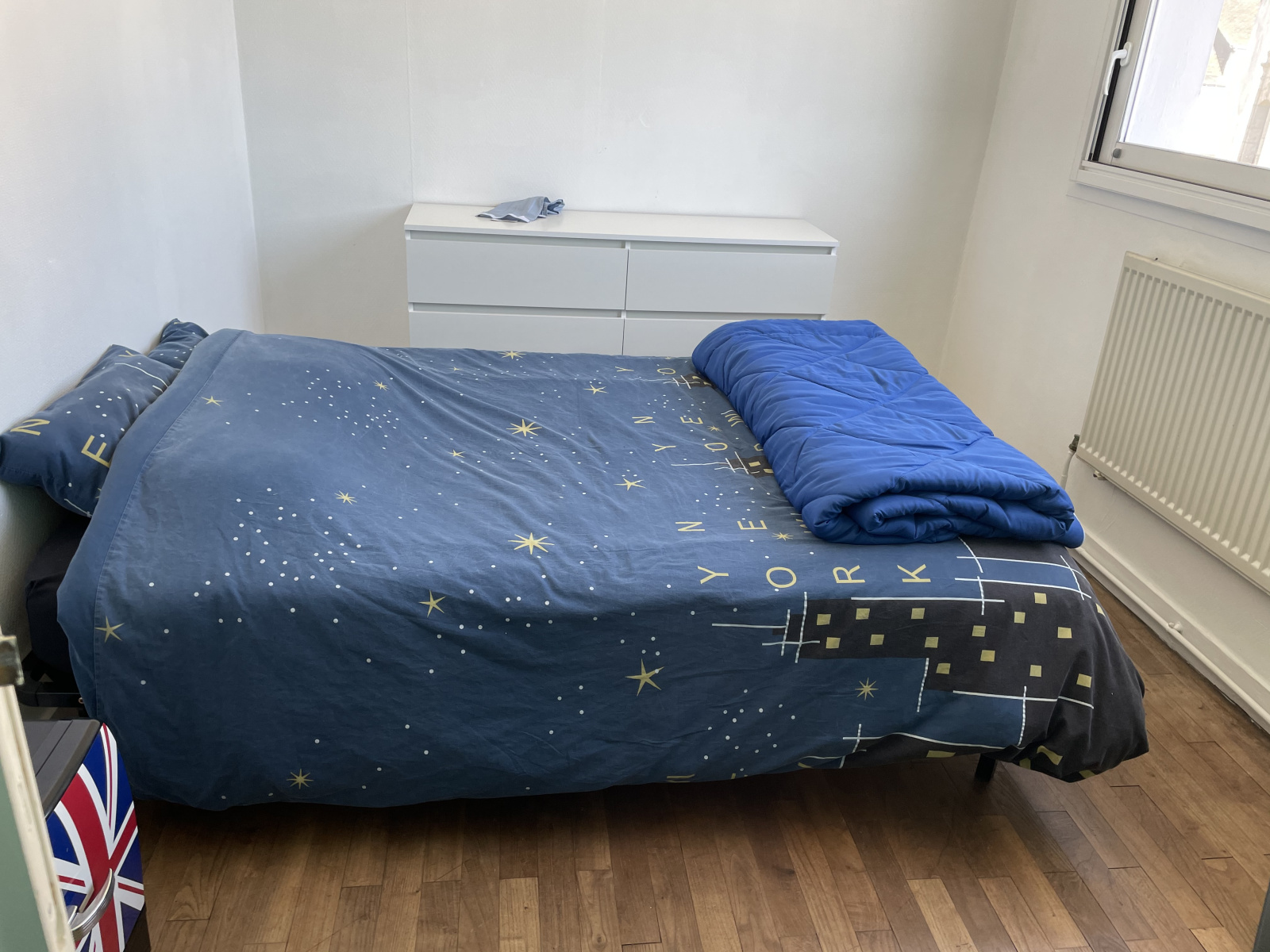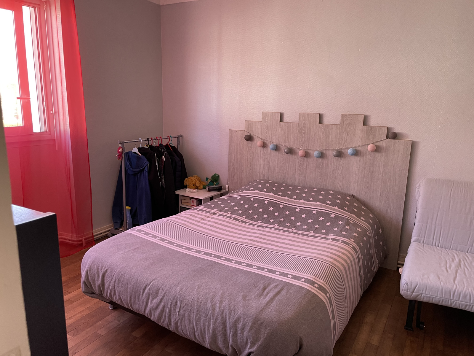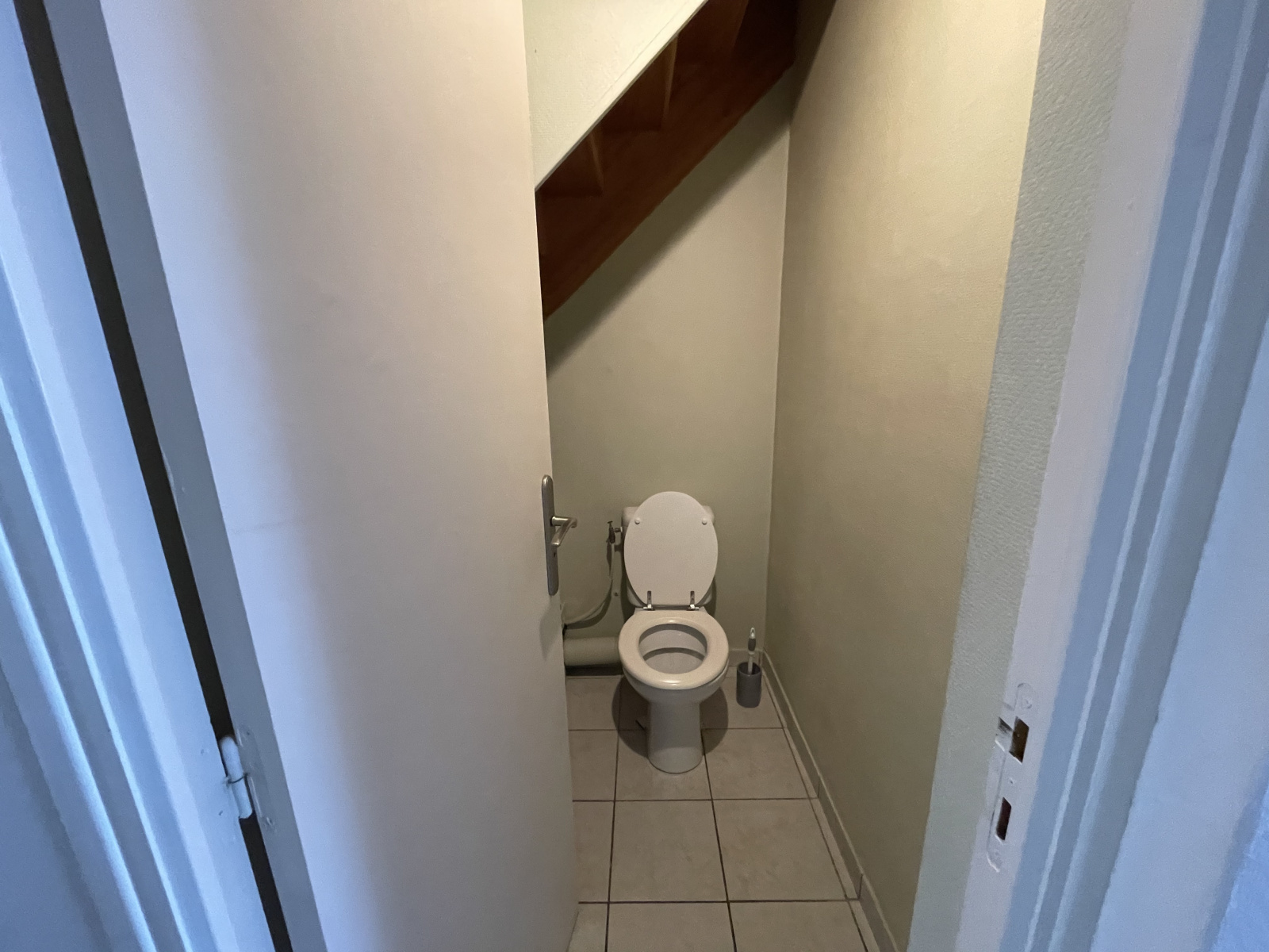 à l'étage 2 chambres, une salle de bain et un WC et un placard.
