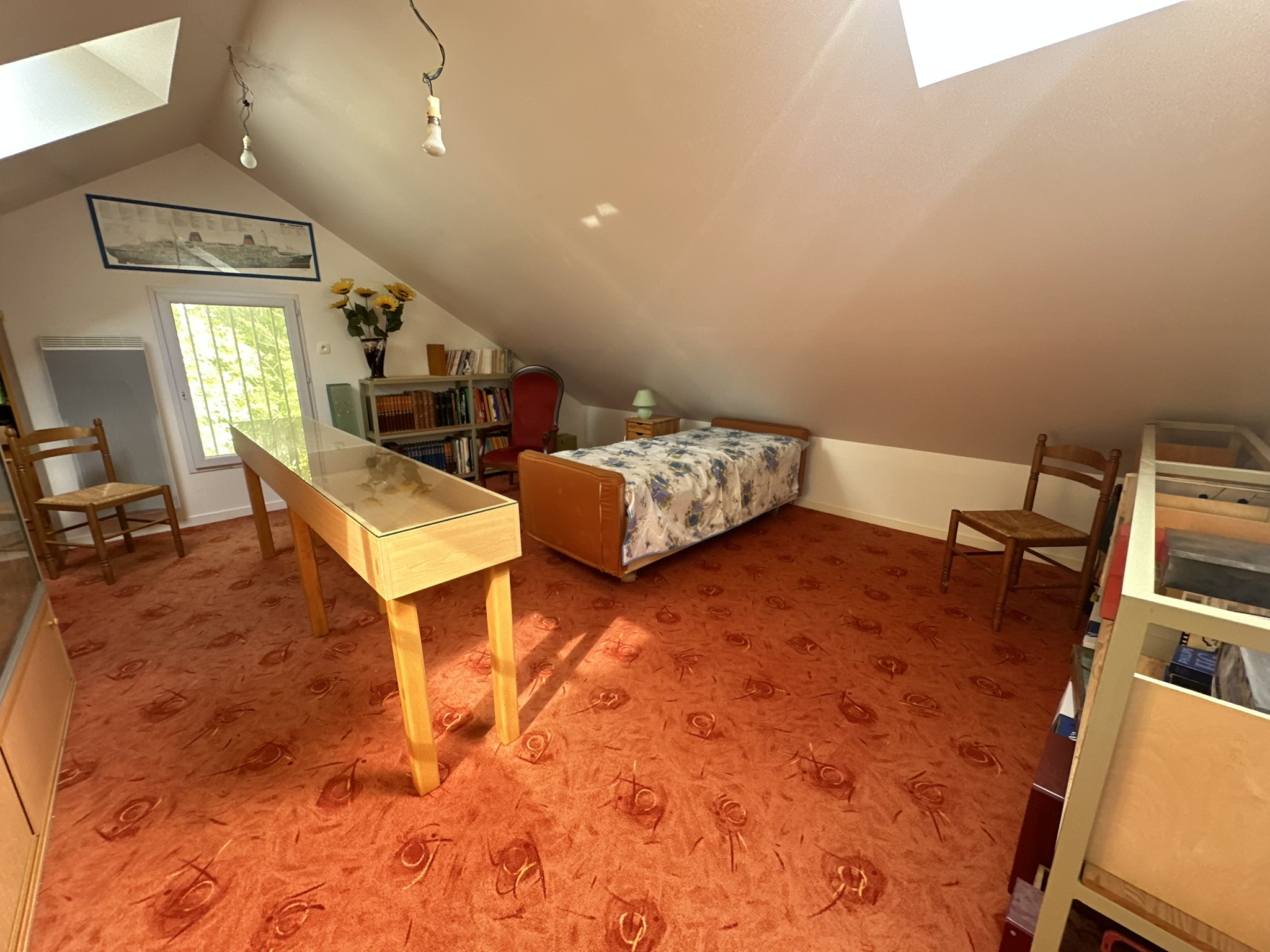 À l’étage, une belle mezzanine distribue trois grandes chambres, parfaites pour accueillir toute la famille.