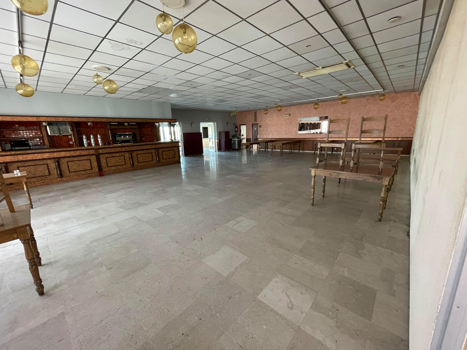 un bâtiment composé : d'un hall d'accueil, un petit salon, un vestiaire, des toilettes, une salle principale avec bar et arrière-bar, un autre bloc toilettes, une pièce annexe multi-usages, des toilettes , un couloir.