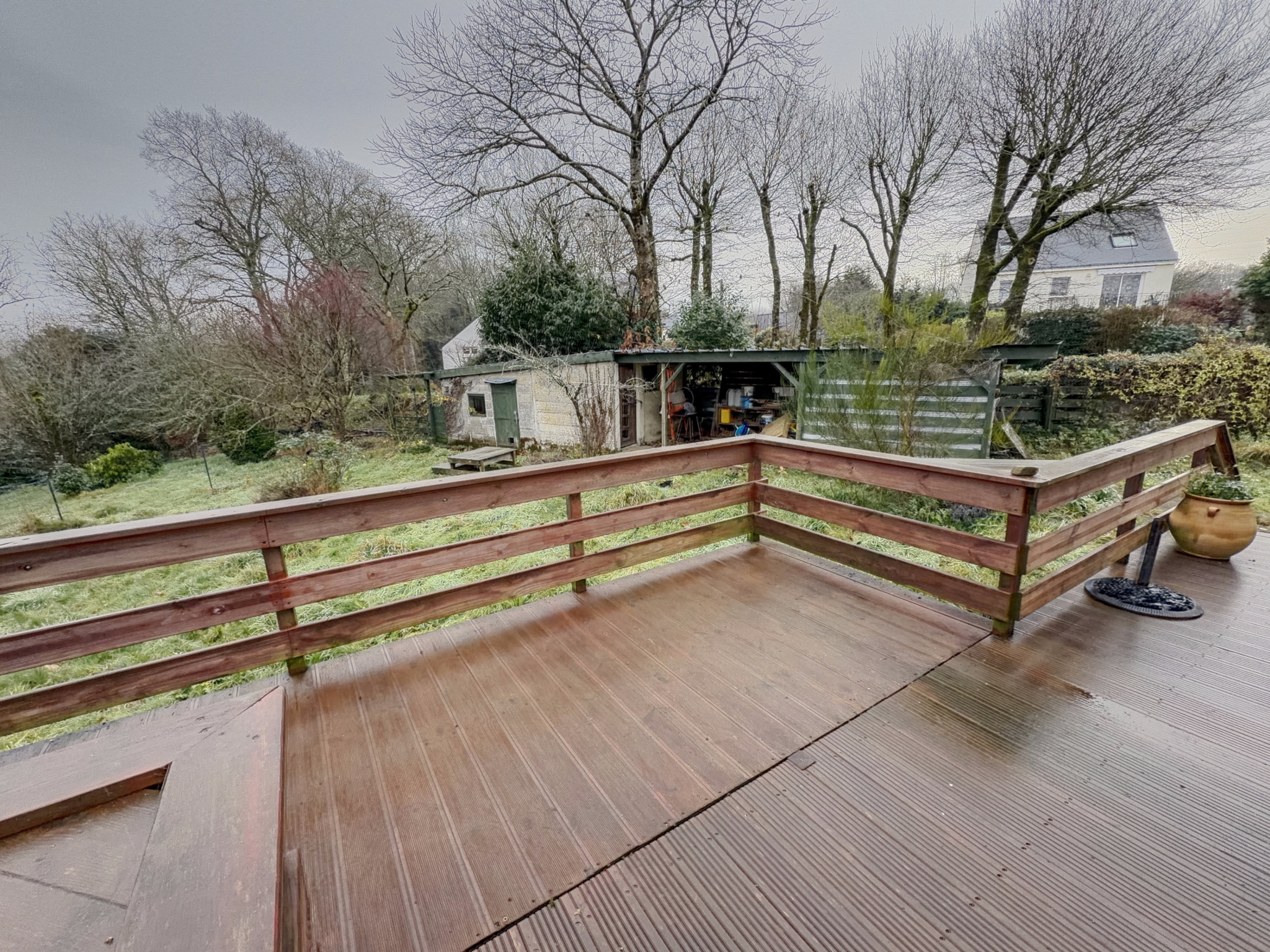 À l’extérieur, vous profiterez d’une belle terrasse en bois avec vue dégagée, de dépendances, ainsi que de panneaux solaires, apportant un réel confort et un atout économique.
