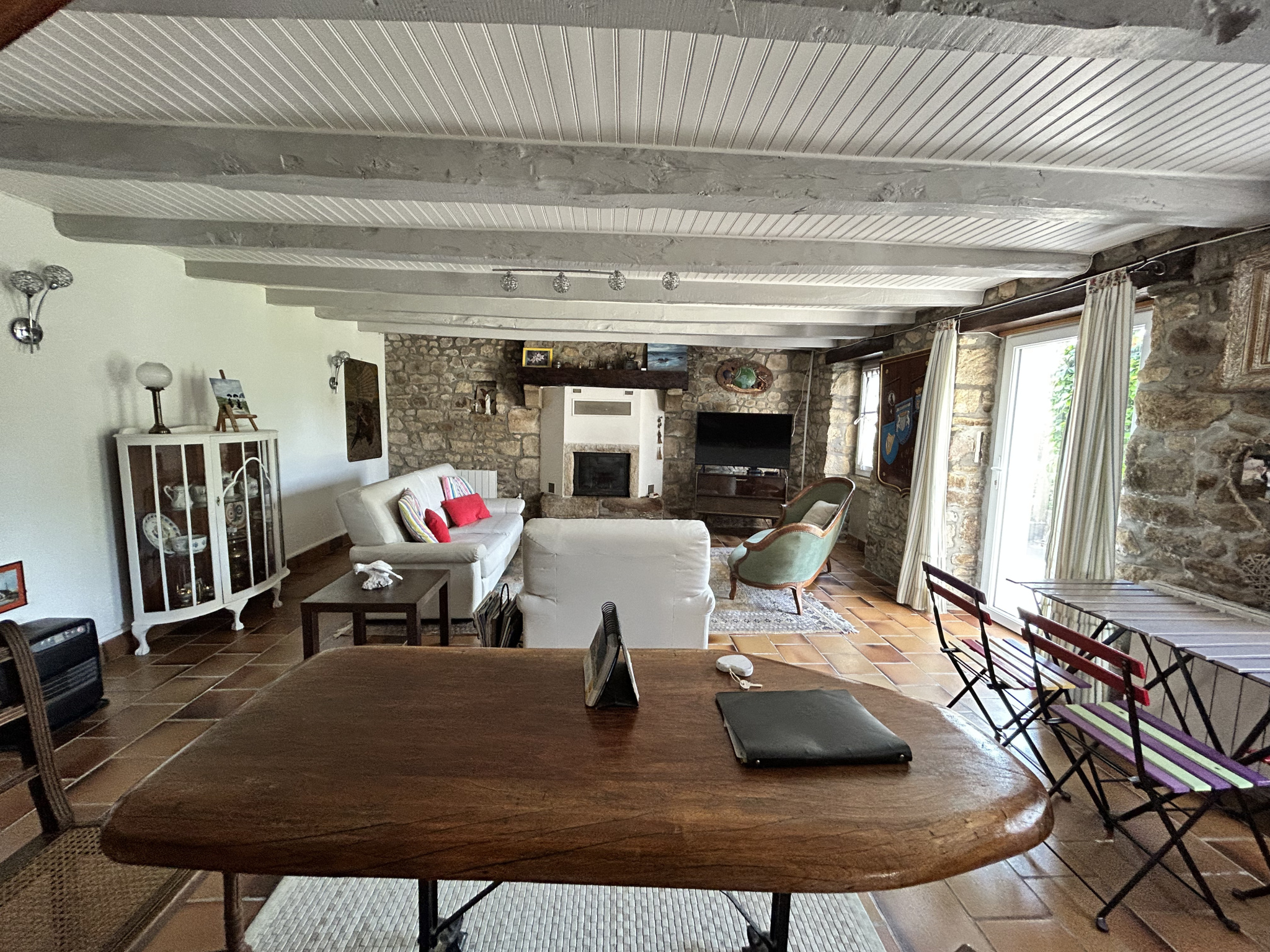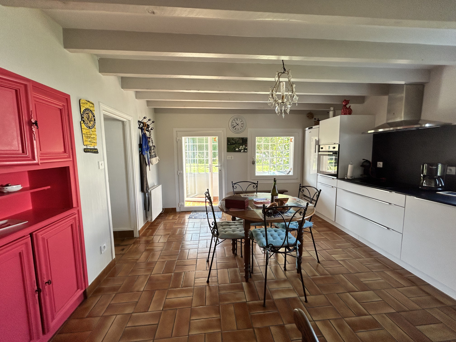 Une cuisine aménagée et équipée, une pièce de vie conviviale comprenant salon et salle à manger, avec cheminée, une salle de bain, une pièce supplémentaire pouvant être aménagée en chambre et un WC,