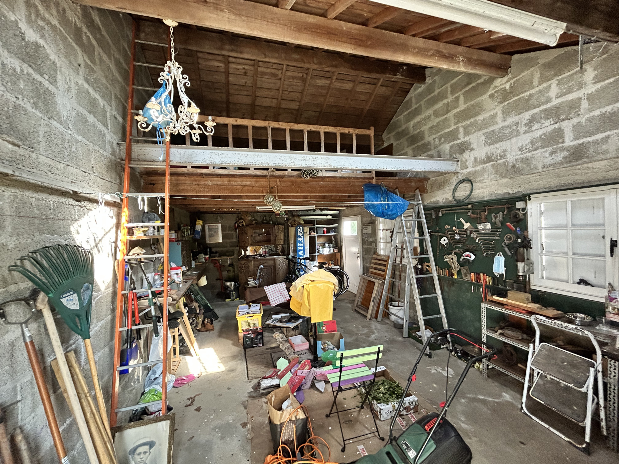 En extérieur : Un garage avec mezzanine, parfait pour créer une dépendance ou un espace de stockage,