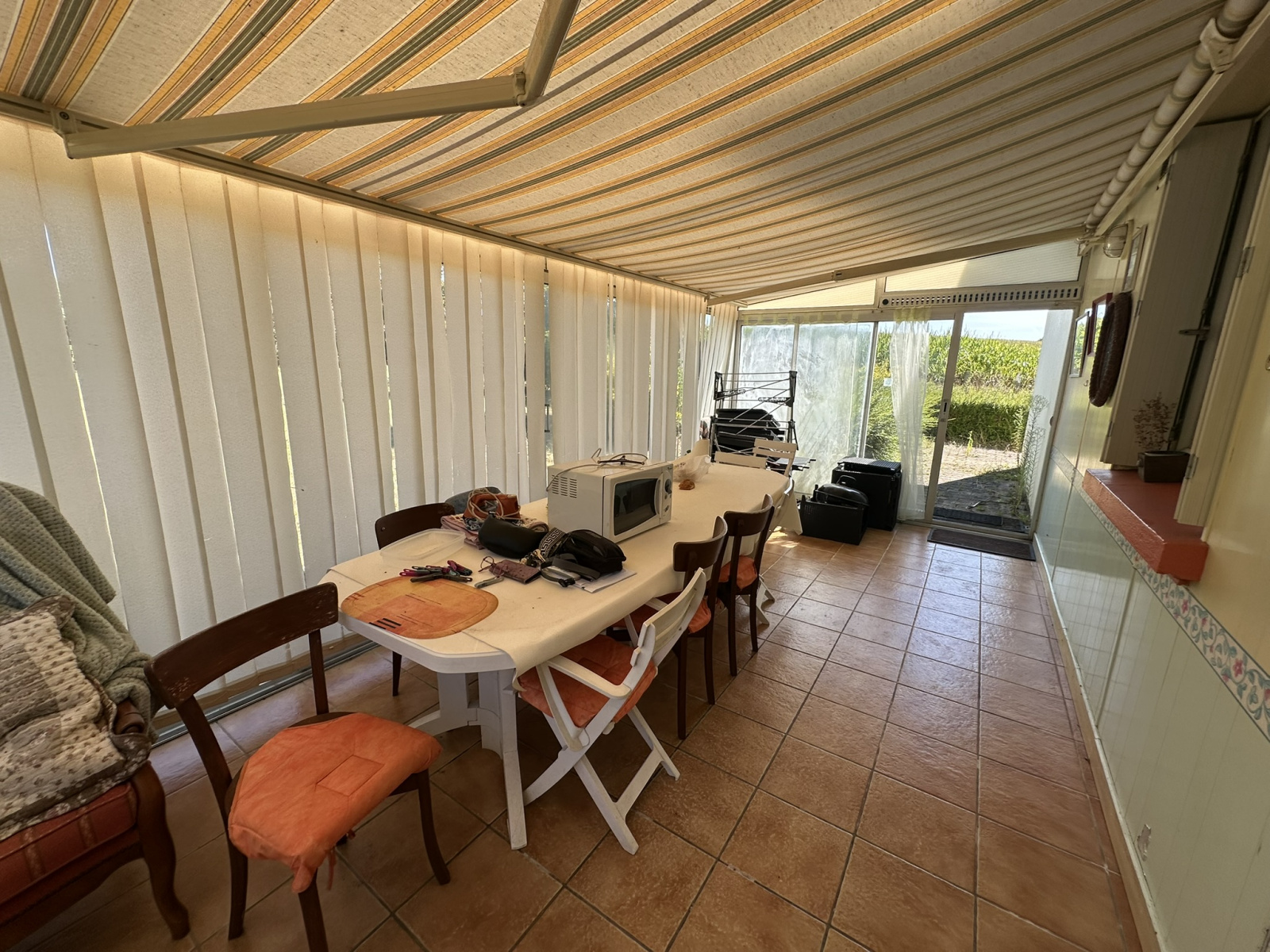 d’une pièce de vie, d’une cuisine, de deux chambres, d’une salle d’eau avec WC, ainsi que d’une véranda lumineuse.