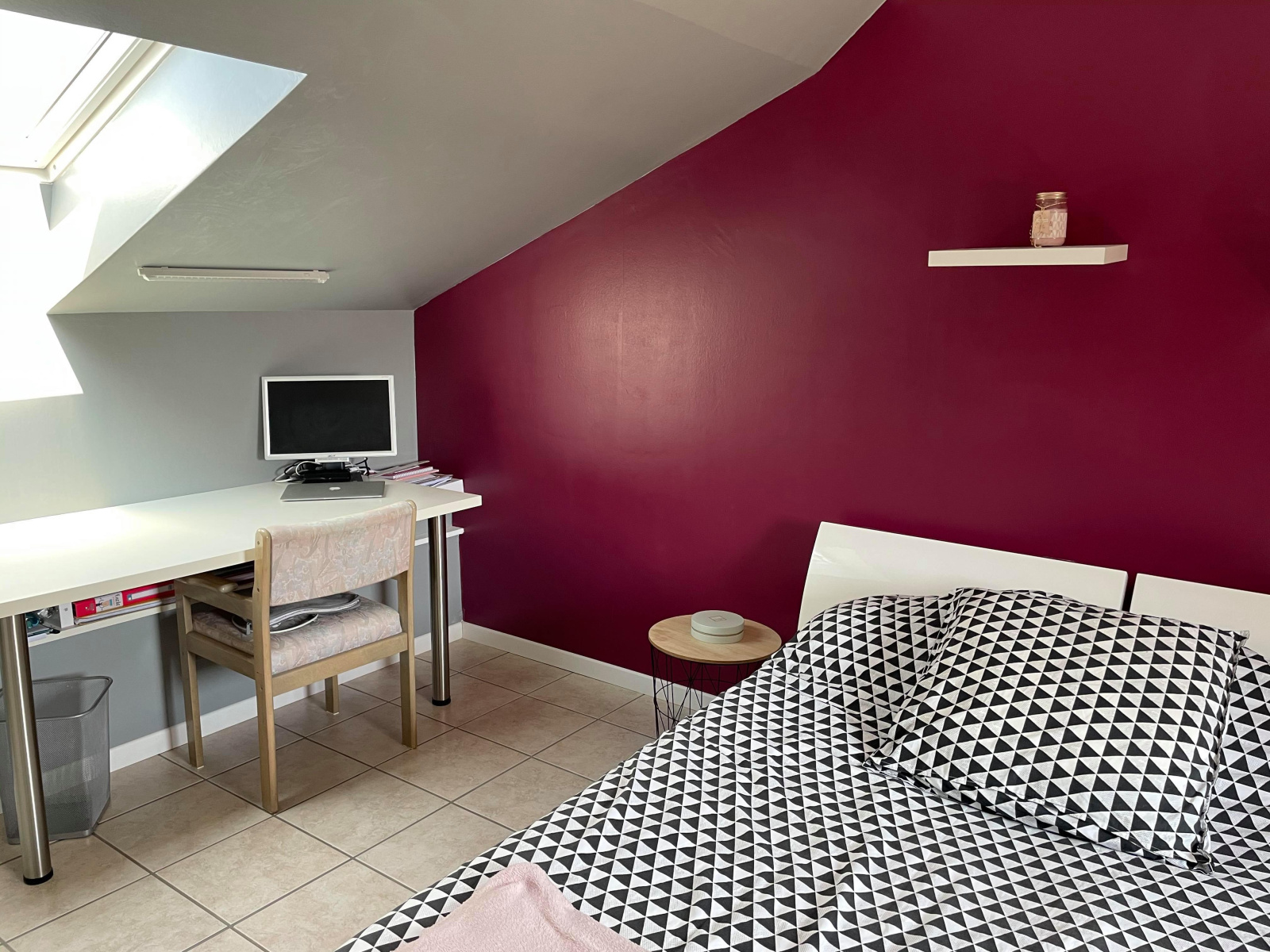 à l'étage : deux chambres et une salle d'eau avec WC, un bureau et un grenier.