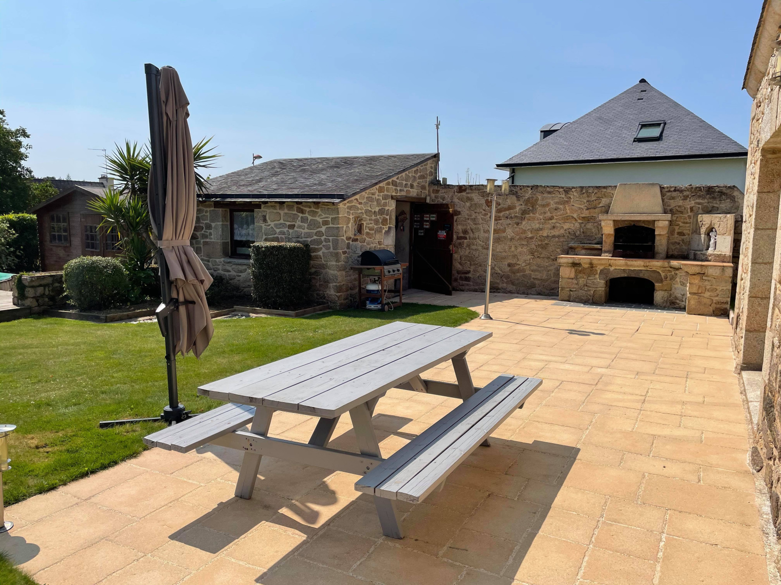Un très joli extérieur avec une belle terasse et une piscine hors sol, deux dépendances dont une en pierre.